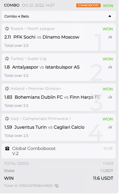 Moderator Mat Posted October 16, 2022 Moderator Share Posted October 16, 2022 $300 BC.GAME SPORTS PARLAYS CHALLENGES #26 Start: 17, Oct 00:00 UTC Ends: 23, Oct 23:59 UTC Hello, ladies and gentleman! Sports Parlay Challenges #26! With a prize pool of $300, the Top 7 takes home a grand prize, and the remaining $60 will be split among all other entrants! What is the challenge? Win a multi-bet with at least x4 by betting on at least 4 matches (all sports) All bet slips must be posted open! Any closed published bet slip will be disregarded! The ODDS for each game will be added up and counted as total points. Voided, half-loss, and half-win bets aren't eligible for the challenge! Cashed-out bets aren’t eligible for the challenge. Using the same odds on a single bet slip isn't allowed Providing the bet link isn’t mandatory Minimum VIP No Minimum VIP Level Minimum payment Multiplier minimum 4x, however, only the top 7 winning parlay multipliers will win the grand prize! Minimum bet size Equivalent to U$$1 Eligible currencies All cryptocurrencies are eligible (except JB) Rewards available 1st place.......$100 2nd place.....$60 3rd Place...... $40 4th Place...... $20 5th Place...... $10 6th Place...... $5 7th Place...... $5 The remaining $60 will be split among all other participants who meet the minimum requirements and minimum stake. How to enter: To participate, post your Ticket ID, along with your Parlay link, as a reply to this thread as follows: Link bet: https://bc.game/sports/?bt-path=%2F%3FbtBookingCode%3D561A9D1 + Ticket ID 2126602890796736992 Along with the screenshot of your accumulated ticket. See how to get your sports bet link below! https://imgur.com/a/BRSyxVE Ticket ID 2126602890796736992 If a selection results in a void or push, the bet will remain eligible as long as it remains equal to or greater than a triple bet and meets the odds requirements. Bets withdrawn will not be counted. Please combine all your hits into a SINGLE post. Edit your existing post to get additional hits, don't create a new post. Bets must be placed during the time window specified above. This thread will automatically lock when the time period ends. One (1) entry per family. If someone finds multiple prizes, they will be disqualified from the challenge as well as all future challenges. Failure to follow the instructions will result in the cancellation of your submission. By entering this challenge, you acknowledge that BC.Game has final decision rights over results and placement. Link to comment Share on other sites More sharing options...