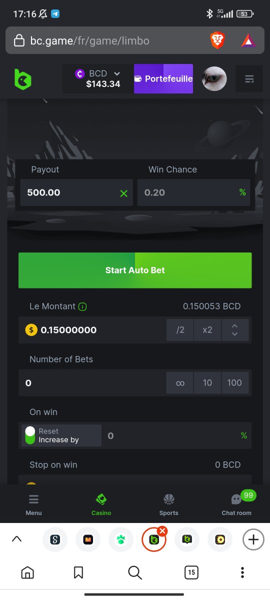 Nikowin88 Posted October 26, 2022 Share Posted October 26, 2022 Hi there @NiobiumI'd like to have your help on this. When doing vip challenge the min bet size is 0.15 ( for original games ) So I go to limbo this week and choose 0.15 BCD bet ) but in history it shows 0.14 BCD bets... I checked and it's actually 0.149... I don't explain it. I had the same glitch with ETh and I thought it could be due to coin price variance, but with BCD it shouldn't happen as 1 BCD = 1 USD. For next time I'll know I have to choose 0.151 bet size I guess. But I just hope my bounty entry will be counted as valid , can you confirm it ? I post bet link and screenshot below https://bc.game/#/sd/10VVA7RU4UAO0J Link to comment Share on other sites More sharing options...