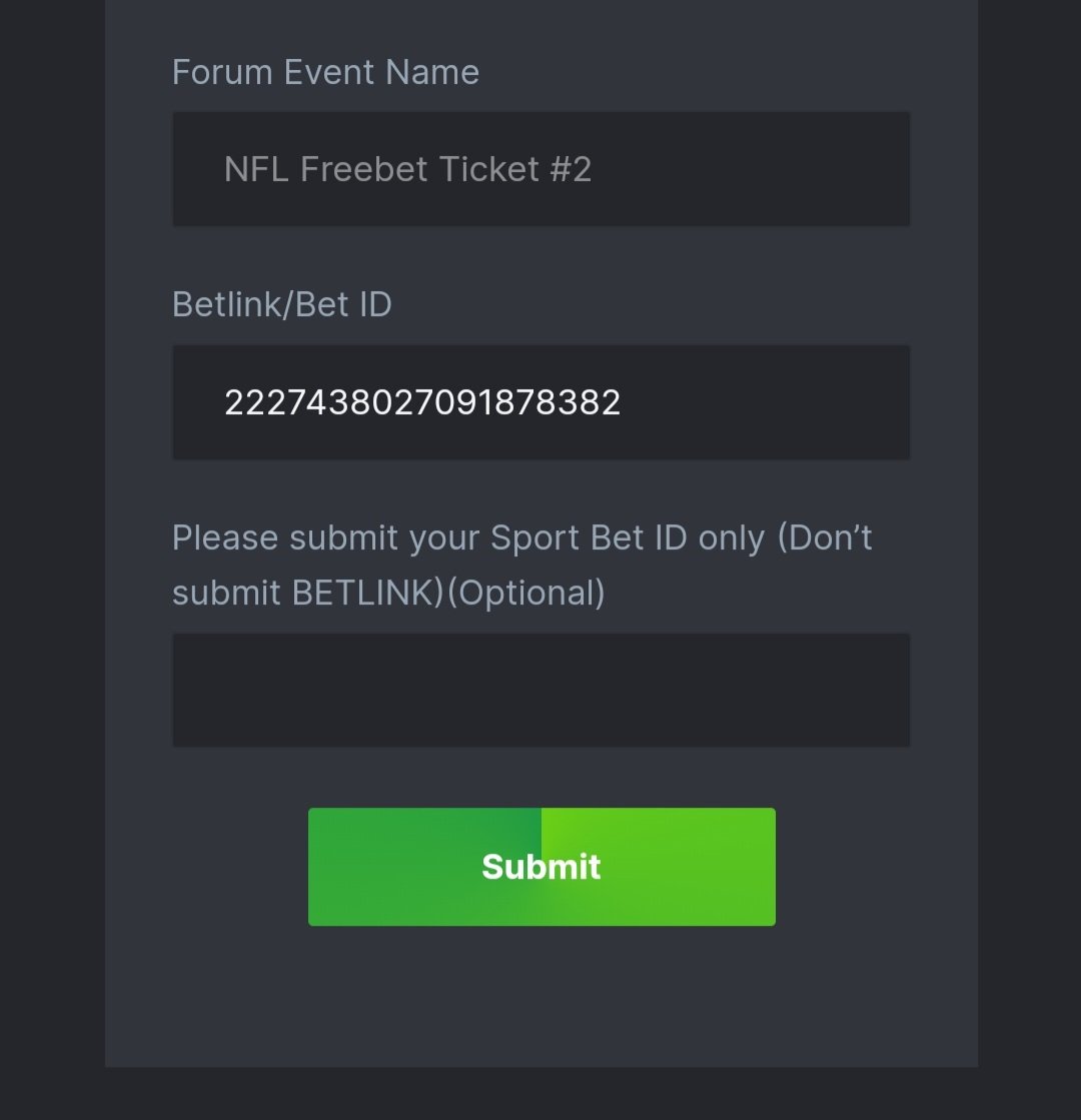 • Please submit the correct sports bet ticket ID. Forms are editable within the event time frame. For any amendments, please resubmit your forms with the link above.