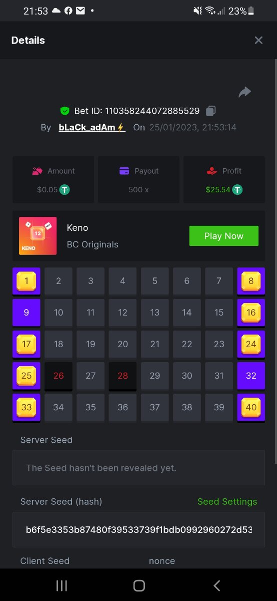 Do we need to place the betlink too (otherwise it shows my local time, which is different then your timezone, and you cant check the legit time and date)? You also mentioned to post the full screenshot. But if i make a screenshot, it only shows the top of it (username, betid  and tiles of keno or) or  the bottem (serverhash, client seed and nonce). I cannot be shown all at once. So I should post 2 screenshots of the bet?