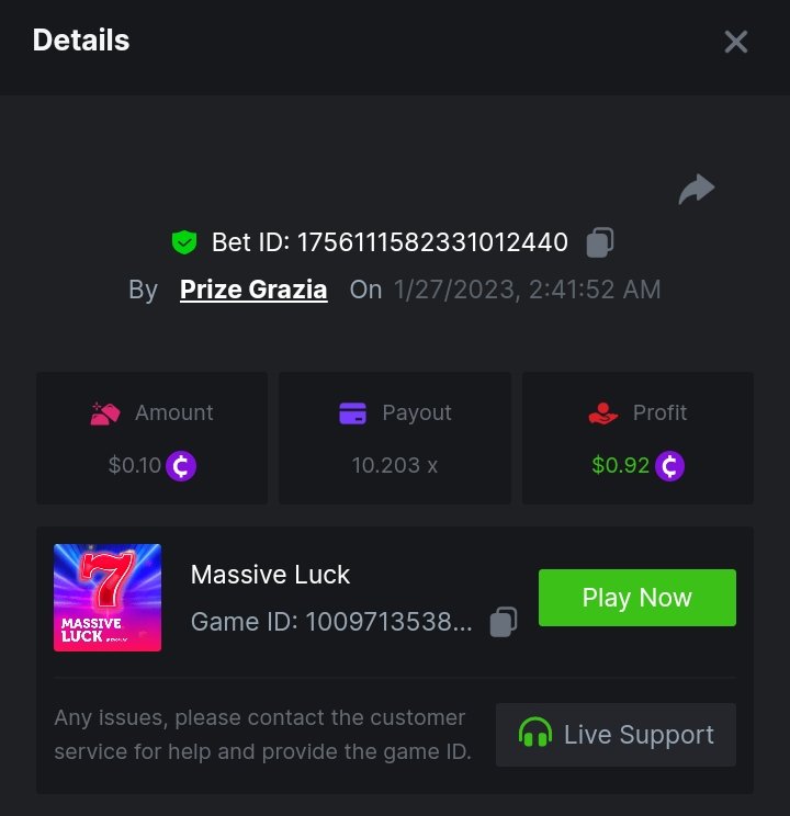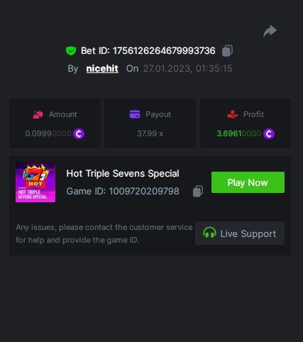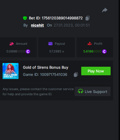 Ciciaq Posted January 26, 2023 Share Posted January 26, 2023 Gold of Sirens Bonus Buy - 57.35x https://bc.game/#/sd/11282WVPKUT8GJ Rueda De Chile Bonus Buy - 58.56x https://bc.game/#/sd/1127WIMREXW55F Hot Volcano Bonus Buy - 100.10x https://bc.game/#/sd/1127ZYTE7EYVIR Mega Greatest Catch Bonus Buy - 120.12x https://bc.game/#/sd/1127XRCR8O1RTF Juicy Gems Bonus Buy - 39.04x https://bc.game/#/sd/1127Y350U9QEQB Hot Triple Sevens Special - 106.11x https://bc.game/#/sd/1127YKK7NOA4NN Inner Fire Bonus Buy - 37.24x https://bc.game/#/sd/1127ZOEN4DQCCZ Massive Luck - 77.58x https://bc.game/#/sd/112817H65XPZ4J ========================================================= Bounty - 50x https://bc.game/#/sd/11283HK6V7NAC3 Link to comment Share on other sites More sharing options...