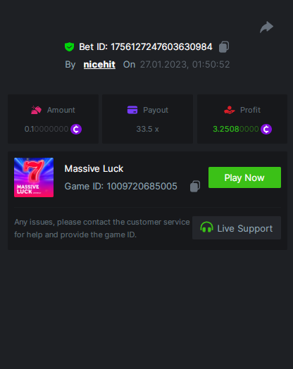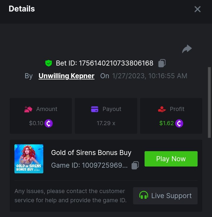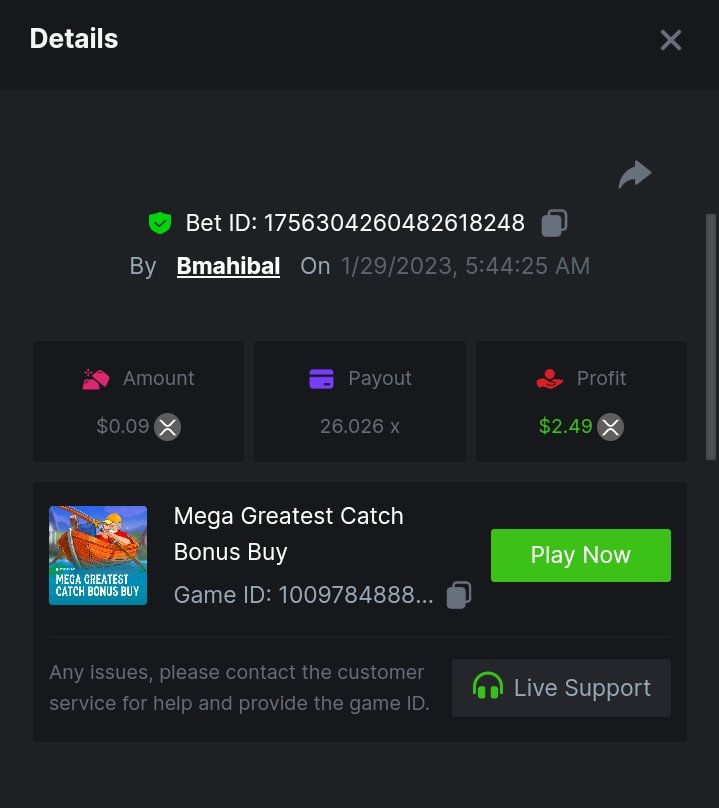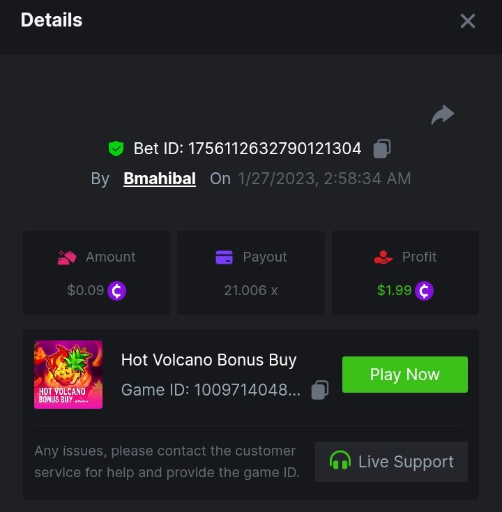 bassabar Posted January 26, 2023 Share Posted January 26, 2023 Total multiplier: 434.8307x Bounty (50x): No Mega Greatest Catch Bonus buy Multiplier: 195.574x https://bc.game/#/sd/1126LO0GQUQUJ7 Hot Volcano Bonus buy Multiplier: 28x https://bc.game/#/sd/1124KASCRCG4CZ Gold Of Sirens bonus buy Multiplier: 30x https://bc.game/#/sd/1124JQYN2DWU8J Magic Wheel Multiplier: x Inner Fire bonus buy Multiplier: 25.1987x https://bc.game/#/sd/1124KH7RMPE7F7 Hot Triple Seven Special Multiplier: 30.509x https://bc.game/#/sd/1126KWA8F8F9JN Patricks Magic Field Multiplier: x Rueda De Chile Bonus Buy Multiplier: 45.017x https://bc.game/#/sd/1126KQPCRG93PV Massive Luck Multiplier: 36.514x https://bc.game/#/sd/1126KKLMM81FRN Juicy Gems Bonus Buy Multiplier: 44.018x https://bc.game/#/sd/1126K13JKSCT1V Link to comment Share on other sites More sharing options...