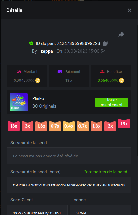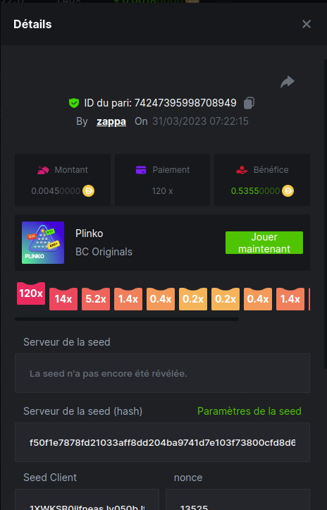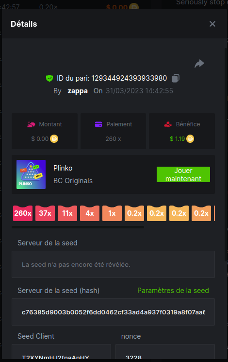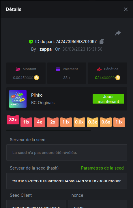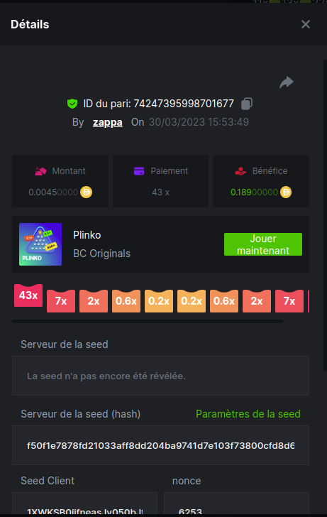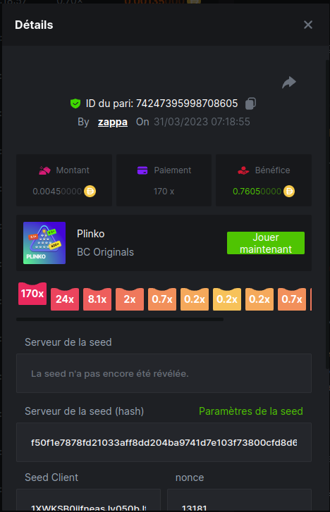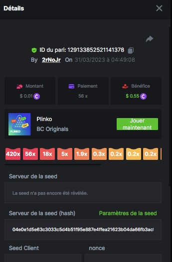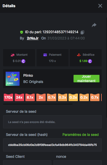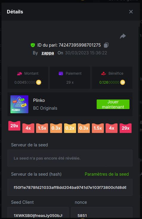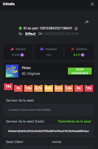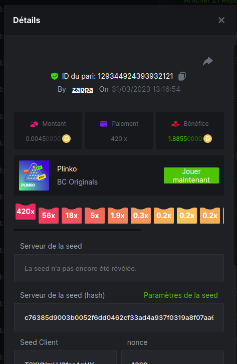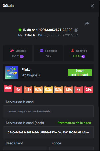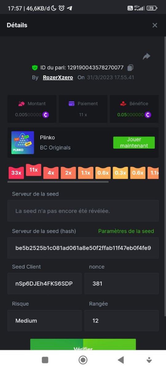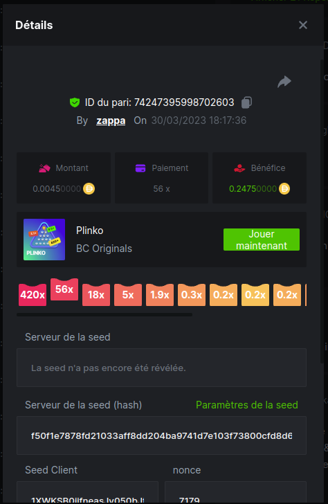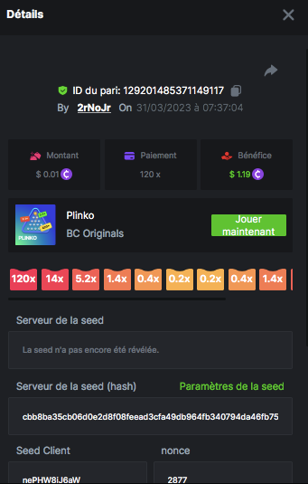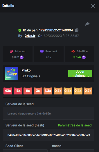 Complétez autant des 17 paiements suivants sur Plinko. Doit être un multiplicateur exact.