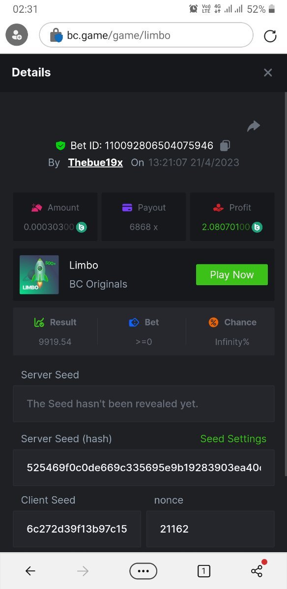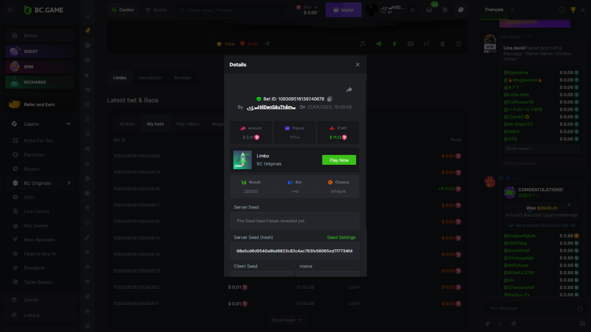 Member AkSyEn03 Posted April 16, 2023 Member Share Posted April 16, 2023 48$ Défi Prestige Limbo #84 DURÉE : 16 avril 10h40- 22 avril 14 h 30 Cette semaine, Prestige Challenge est de retour avec votre jeu préféré Limbo ! Participez à cet événement incroyable mais stimulant pour partager des prix d'une valeur de 48 $ ! Veuillez consulter ci-dessous le tout nouveau tableau de distribution de la cagnotte pour en savoir plus. Nous allons essayer cette nouvelle méthode pendant un certain temps et en fonction des participations et des retours, nous augmenterons encore nos cagnottes. Quel est le défi ? Gagnez le multiplicateur le plus élevé possible sur le jeu maison de BC.Game, Limbo. S'il y a égalité, le joueur avec le montant de pari moyen le plus élevé (en USD) sera le gagnant. S'il y a égalité dans le montant et le paiement, celui qui a publié ou modifié sa publication en premier sera considéré dans le classement. Rejoignez et faites un basebet d'au moins 0,15 vous pouvez rejoindre 2 événements en même temps événement régional événement forum et obtenez une double récompense !!! Comment entrer Pour participer, copiez le lien du pari que vous souhaitez soumettre. Une fois que vous l'avez copié, collez-le en réponse à ce fil comme suit : Lien : https://bc.game/#/sd/117K0971D8G8B7 Dans le même message, téléchargez une capture d'écran de votre gain en cliquant sur l'ID de jeu AVEC AFFICHAGE EN USD mode ACTIVÉ (accessible en bas du menu déroulant pour votre portefeuille en haut. De cette façon, nous pouvons nous assurer que votre pari a bien atteint l'exigence minimale au moment de le placer : -VIP minimal Il n'y a pas de niveau VIP minimum -Le paiement minimum pour se qualifier est de 20x Taille de mise minimale -L'équivalent de 0,003 USD Toutes les crypto-monnaies sont éligibles (sauf JB)Prix disponibles : 1er..............$15 2ème..........$10 3ème..........$5 4 à 13.........$2 CONDITIONS GÉNÉRALES : Veuillez combiner tous vos résultats dans un SEUL message. Modifiez votre publication existante pour des résultats supplémentaires, ne créez pas de nouvelle publication. Chaque inscription éligible doit avoir l'URL du bordereau de pari. Si vous ne l'incluez pas, la participation à l'événement sera disqualifiée. L'image du bulletin de pari n'est pas obligatoire. Les paris doivent être publiés dans les 24 heures suivant le placement du pari afin que les choses restent équitables pour tout le monde. Les paris doivent être faits pendant la fenêtre de temps spécifiée ci-dessus. Ce fil se verrouillera automatiquement lorsque la période de temps sera terminée. Une (1) participation par foyer. Toute personne surprise en train de tenter de gagner plusieurs prix sera disqualifiée de ce défi ainsi que de tous les défis futurs. Le non-respect des instructions entraînera la nullité de votre soumission. En participant à ce défi, vous reconnaissez que BC.Game a la décision finale sur les résultats et le placement. Les paiements seront distribués après la fin de l'événement. Veuillez noter que cela peut prendre entre 24 heures et 7 jours après la fin de l'événement. Link to comment Share on other sites More sharing options...