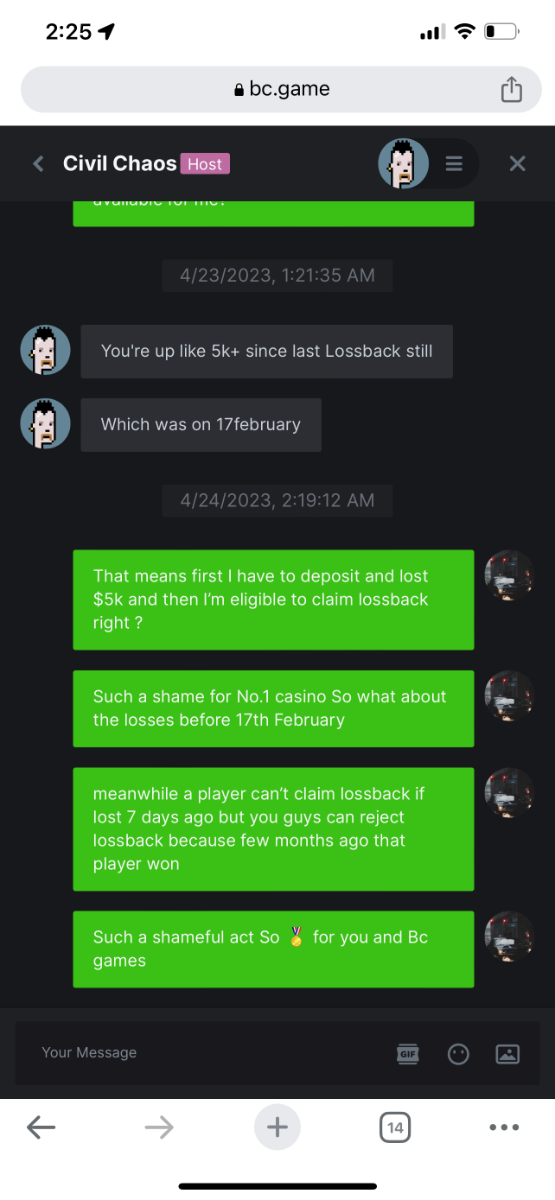 Deep4788 Posted April 24, 2023 Share Posted April 24, 2023 meanwhile a player can’t claim lossback if lost 7 days ago but bc.games can reject lossback because few months ago that player won . So I feel that is such a shame for so called Number 1 Casino in the world such a shame, for bc.games. I add screenshots of conversation with my host. Link to comment Share on other sites More sharing options...
