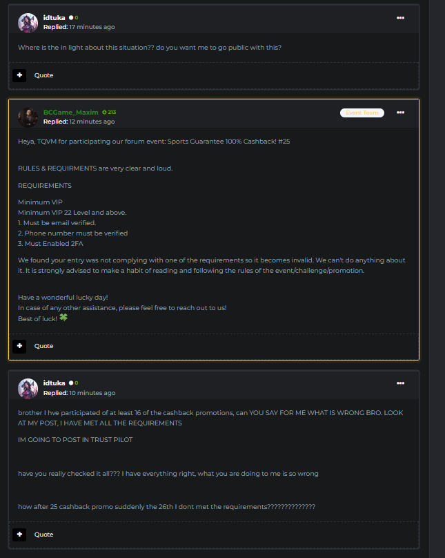 idtuka Posted May 18, 2023 Share Posted May 18, 2023 this is so shit, I dont believe I needed to create a post to get my money back. I m level 22 email verified, phone number verified wit 2fa and they say I dont met the requirements, I ve done this promo over 15 times and never had any issue with them and now they dont want to pay me please any moderator thats not bc game max could help me please Link to comment Share on other sites More sharing options...