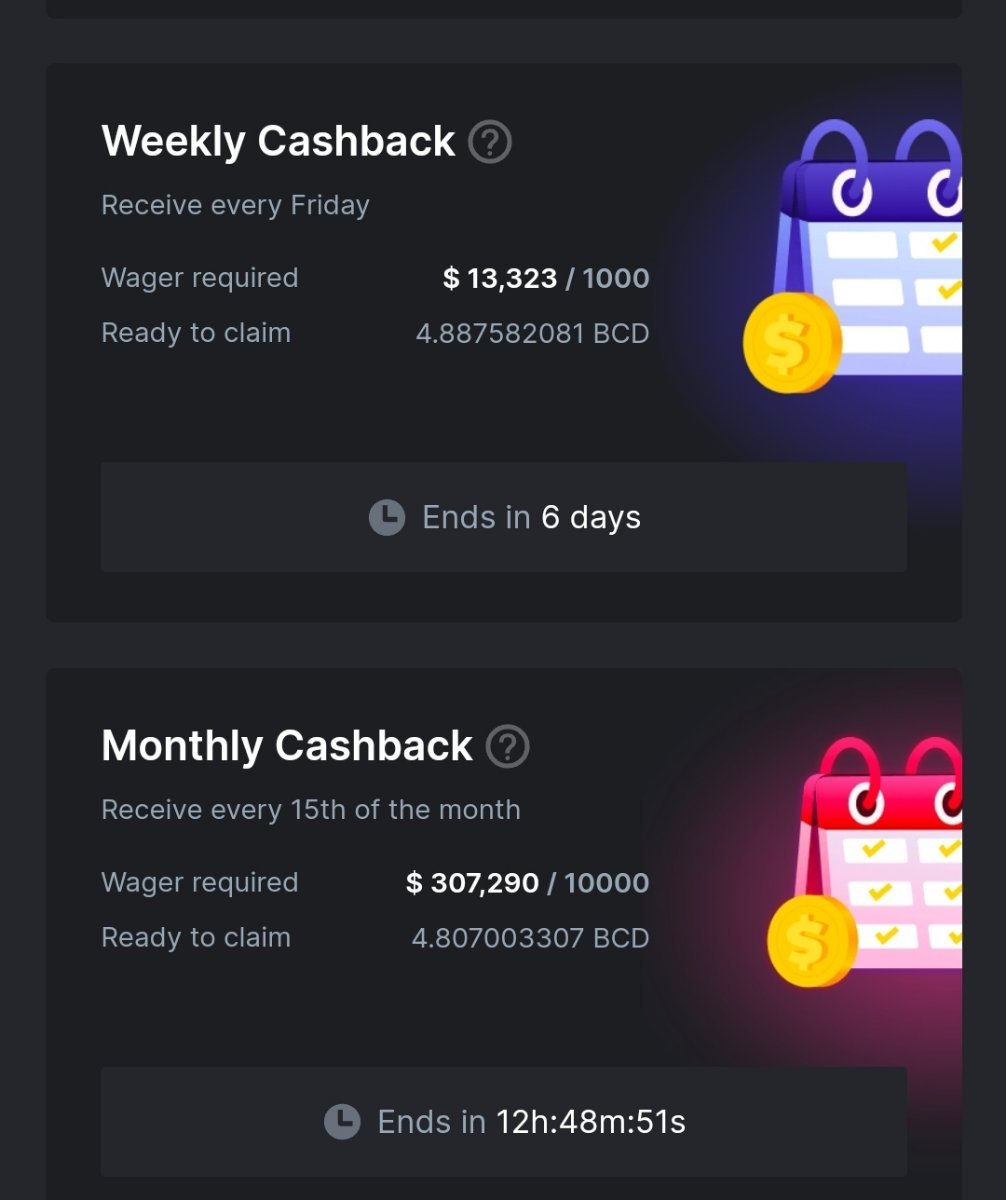 naas Posted July 14, 2023 Share Posted July 14, 2023 How with a monthly wager of over 307,000 am I set to recieve only 4.80 monthly bonus which coincidentally was the same amount I just got for the weekly? In the past month I have lost well over 15K here. Losing 1400 just yesterday. Yet the monthly remains unchanged. Another user showed me his monthly is 2K+ also with a 300K+ wager. Doesn't make sense why mine is so low. Also a few days ago with a lower wager my weekly was showing I had 11bcd ready to redeem but then once the time period ended it only gave me 4.80. And last week it showed 27bcd but only gave me 11bcd. Link to comment Share on other sites More sharing options...
