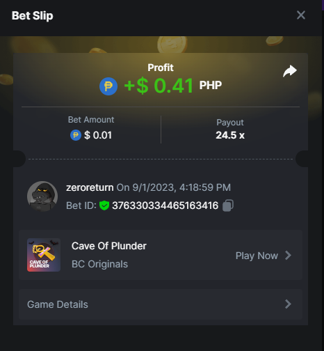 Moderator Giandreas Posted September 1, 2023 Moderator Share Posted September 1, 2023 Read Carefully Before Start To Hunt Forum Daily Challenges #345 cave of plunderHunt : cave of plunder Win the highest pay out Min Payout min 17x Min Level 4️Duration Starting : Now End time : 23.59 UTC Time How to Join? Make screenshot + paste your bet link + UID or Profile link Any coin, with min bet 0.01 USD is allowed (jb/bb/bcl not allowed)Reward Prizes 1st Place.....$7 BCD 2nd Place.....$5 BCD 3rd Place.....$4 BCD 4th Place.....$3 BCD 5th Place.....$2 BCD 🏵 Winners will be announcing next day after Roll Point! Link to comment Share on other sites More sharing options...