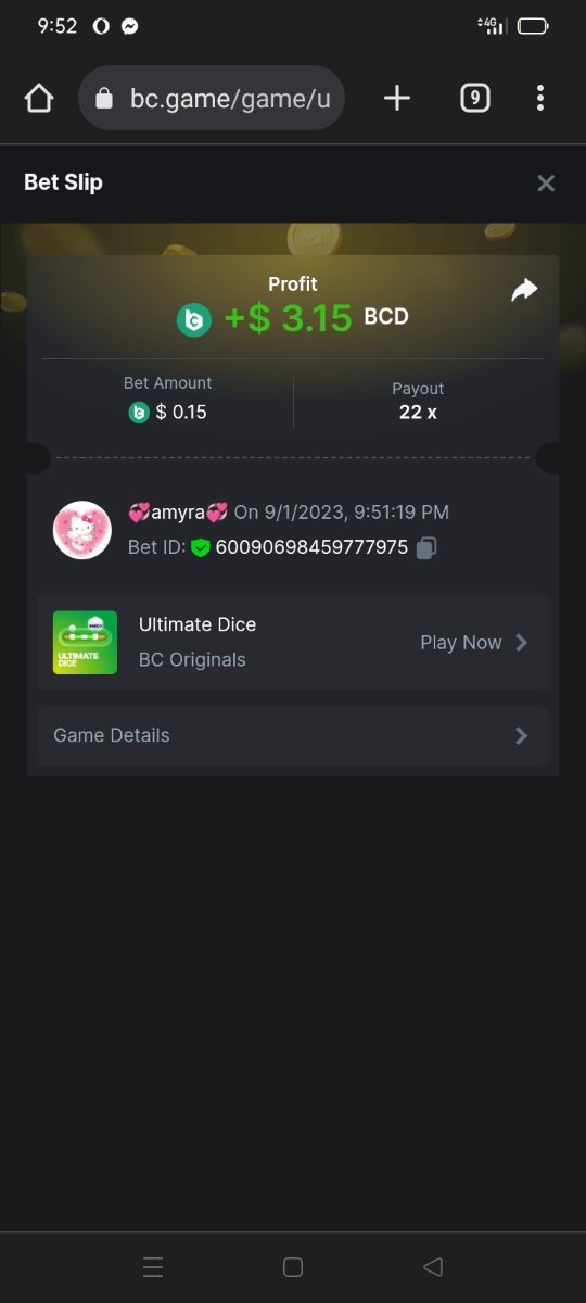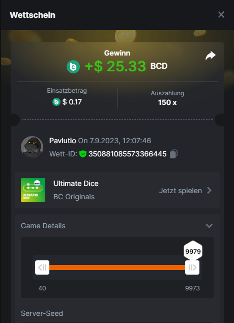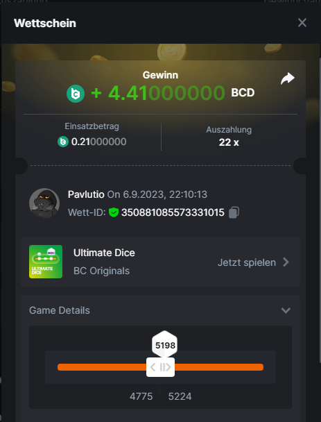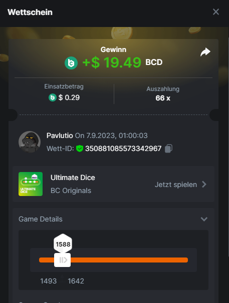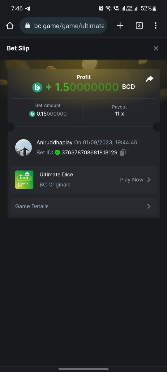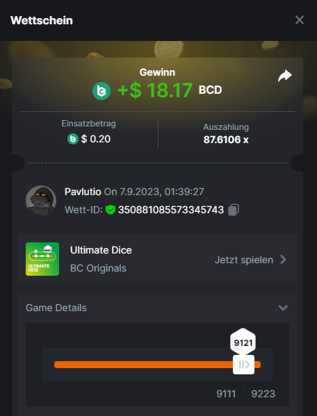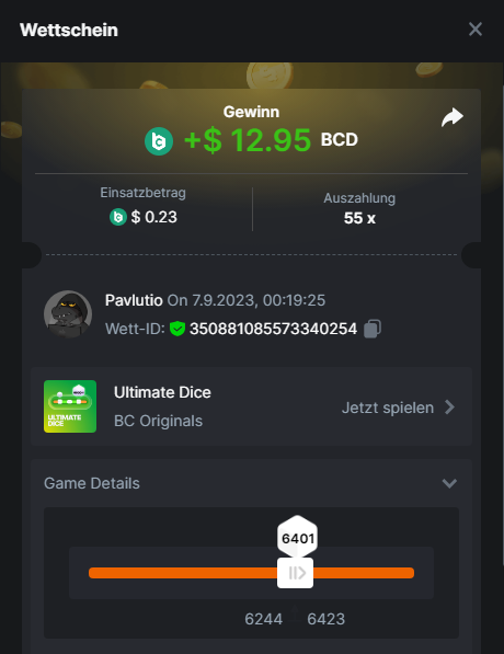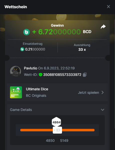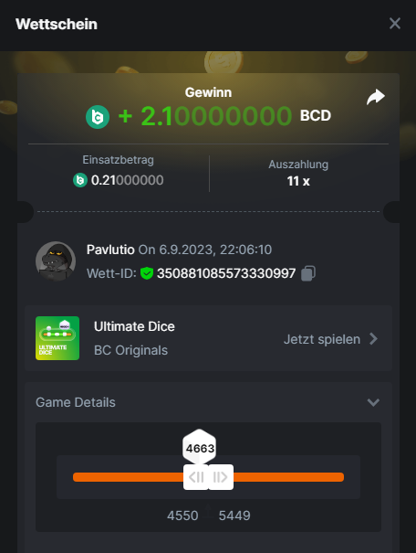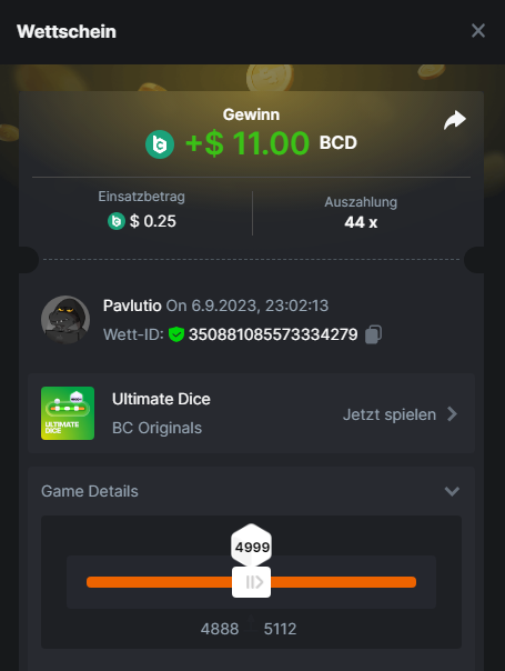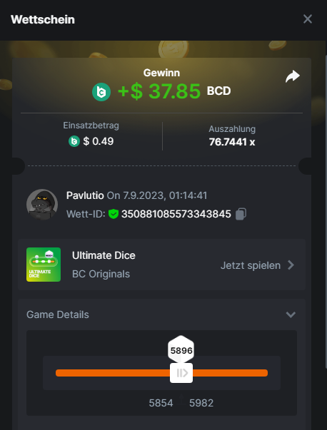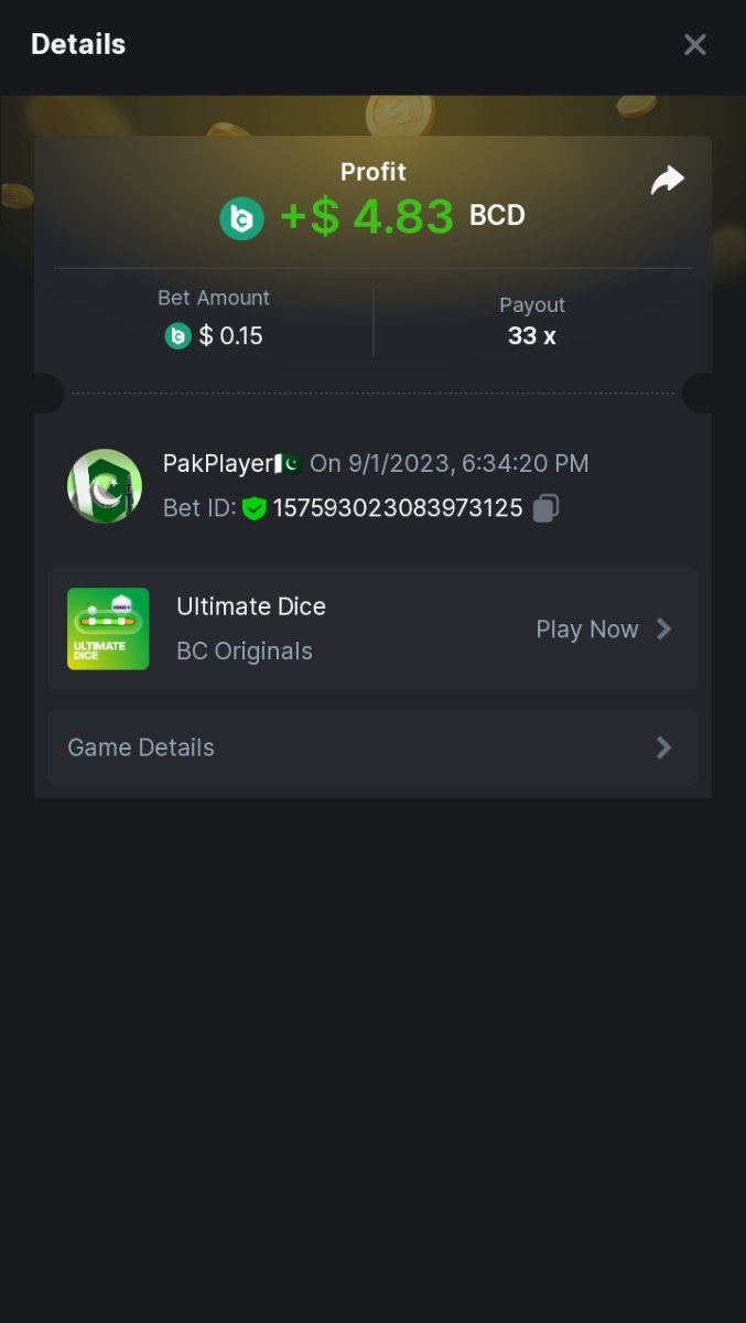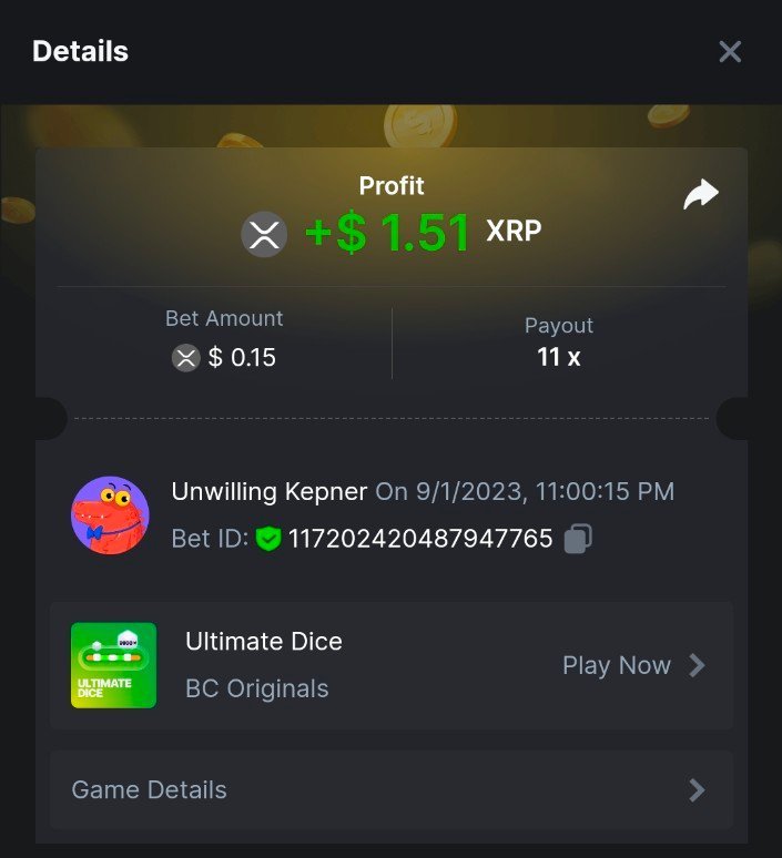 Admin BC_Jack Posted September 1, 2023 Admin Share Posted September 1, 2023 $5k Prestige Ultimate Dice Challenge #104 DURATION: 1st SEP - 8th SEP 13:20 pm UTC Greetings, BC.Game enthusiasts! The thrill of rolling the dice just got even more exhilarating! Dive into the "$5k Prestige Ultimate Dice Challenge #104", a spectacular arena where precision meets luck, and stand a chance to bask in glory and rewards. Running from 1st September to 8th September, this is your golden opportunity to showcase your prowess in Ultimate Dice and share a grand prize pool worth $5,000! Whether you're a seasoned player or just looking for a new challenge, this week promises unforgettable excitement and potentially handsome rewards. So, gear up, aim for those multipliers, and may fortune favor your rolls! Let's roll to victory! What's the Challenge? Complete as many of the following 20 multipliers on our in-house Ultimate Dice. Must be a winning bet. | 11x | 22x | 33x | 44x | 55x | 66x | 76.7441x | 87.6106x | 99x | 150x | 220x | 300x | 396x | 550x | 825x | 900x | 1100x | 2475x | 3300x | 4950x | Each multiplier you hit above counts as 1 point (Maximum 1 point for each multiplier). If there is a tie, the player with the higher average bet amount (in USD) shall be the winner. How to Enter To enter, copy the link of the bet you'd like to submit. Once you've copied it, paste it as a reply to this thread like so: Link: https://bc.game/#/sd/11H78LROL96057 In the same post, upload a screenshot of your win by clicking the game ID WITH VIEW IN USD mode ENABLED (accessible at the bottom of dropdown menu for your wallet up top. This way, we can ensure that your bet indeed met the minimum requirement at the time of placing it: Link: https://bc.game/#/sd/11H78LROL96057 Minimum VIP Minimum VIP 4 with phone verified will be eligible! Minimum Payouts Hit at least 4 payouts to qualify Minimum Bet Size $0.15 USD equivalent Eligible Coins All cryptocurrencies are eligible (excepting JB, and BCL) Available Prizes GENERAL TERMS Please combine all of your hits together in a SINGLE post. Edit your existing post for additional hits, don't create a new post. Bets must be posted within 24 hours of placing bet in order to keep things fair for everyone. Bets must be made during the specified time window stated above. This thread will lock automatically when the time period is over. One (1) entry per household. Anyone found attempting to win multiple prizes will be disqualified from this challenge as well as all future challenges. Failure to follow instructions will result in your submission being null and void. By entering this challenge, you acknowledge that BC.Game has the final decision on results and placement. Payouts will be distributed after the event is finished. Please note that it could take anywhere between 24 hours to 7 days after the completion of the event. 1 Link to comment Share on other sites More sharing options...