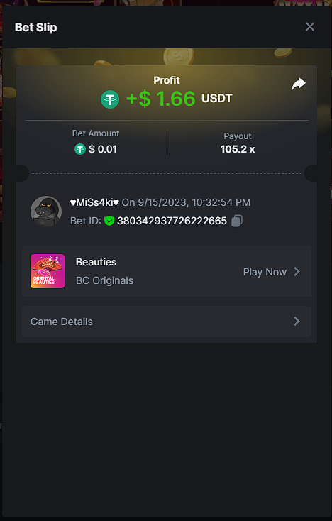 Moderator Giandreas Posted September 15, 2023 Moderator Share Posted September 15, 2023 Read Carefully Before Start To Hunt Forum Daily Challenges #359 Oriental BeautiesHunt : Oriental Beauties Win the highest pay out Min Payout : x20 Min Level 4️Duration Starting : Now End time : 23.59 UTC Time How to Join? Make screenshot + paste your bet link + UID or Profile link Any coin, with min bet 0.01 USD is allowed (jb/bb/bcl not allowed)Reward Prizes 1st Place.....$7 BCD 2nd Place.....$5 BCD 3rd Place.....$4 BCD 4th Place.....$3 BCD 5th Place.....$2 BCD 🏵 Winners will be announcing next day after Roll Point! 1 Link to comment Share on other sites More sharing options...
