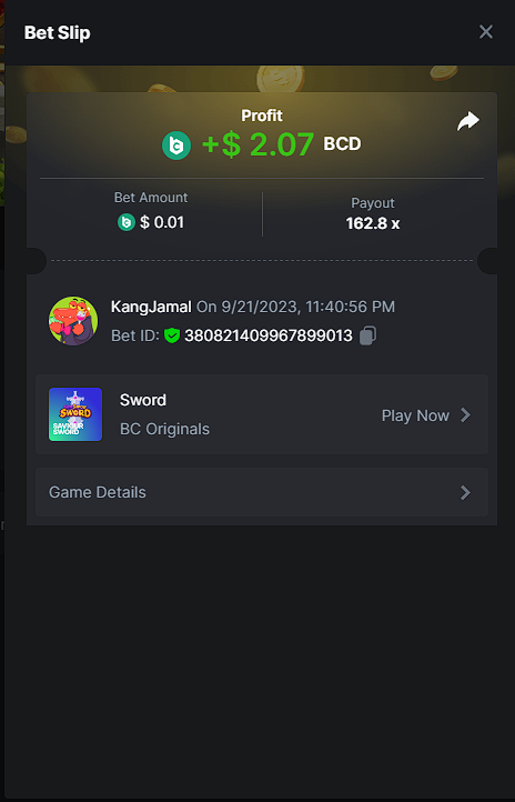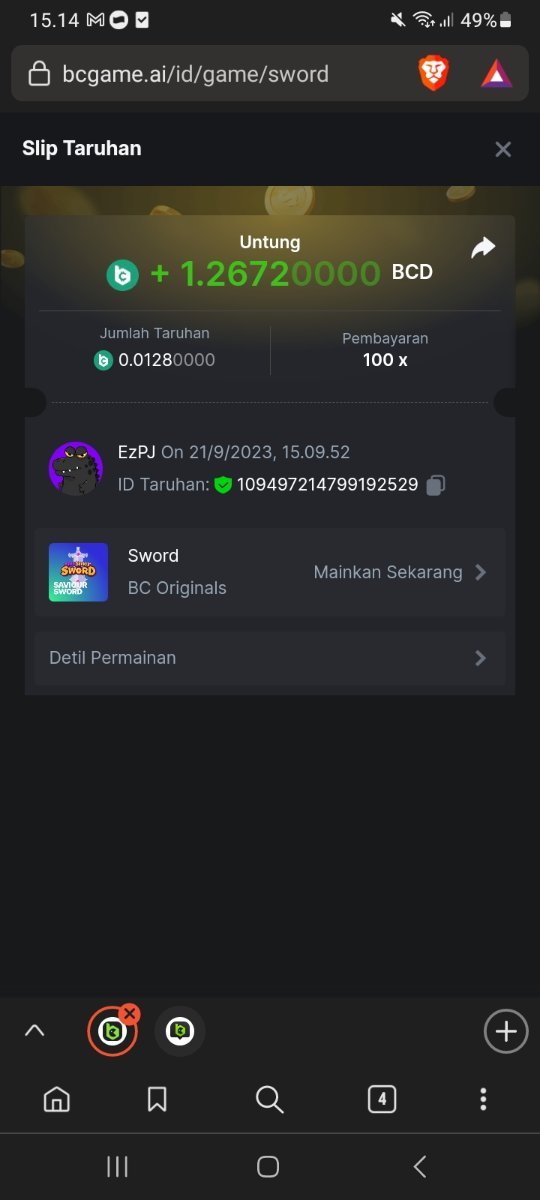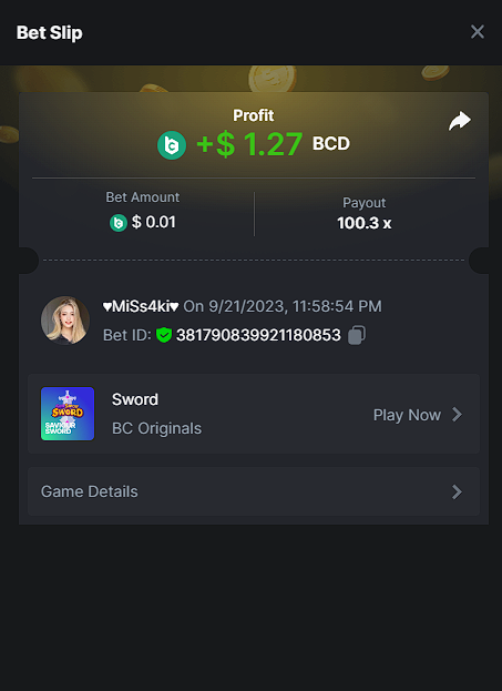 Moderator Giandreas Posted September 21, 2023 Moderator Share Posted September 21, 2023 Read Carefully Before Start To Hunt Forum Daily Challenges #365 SwordHunt : Sword Win the highest pay out Min Payout : x20 Min Level 4️Duration Starting : Now End time : 23.59 UTC Time How to Join? Make screenshot + paste your bet link + UID or Profile link Any coin, with min bet 0.01 USD is allowed (jb/bb/bcl not allowed)Reward Prizes 1st Place.....$7 BCD 2nd Place.....$5 BCD 3rd Place.....$4 BCD 4th Place.....$3 BCD 5th Place.....$2 BCD 🏵 Winners will be announcing next day after Roll Point! 2 Link to comment Share on other sites More sharing options...