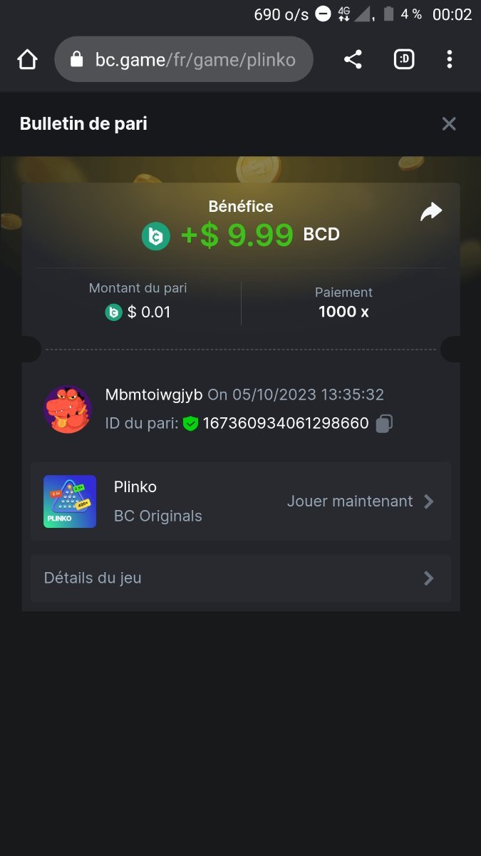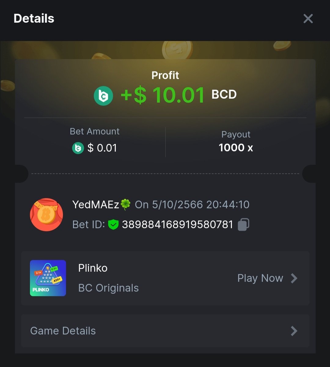 Moderator Giandreas Posted October 5, 2023 Moderator Share Posted October 5, 2023 Read Carefully Before Start To Hunt Forum Daily Challenges #378Hunt : Plinko Win the highest pay out Min Payout : x120 Min Level 4️Duration Starting : Now End time : 23.59 UTC Time How to Join? Make screenshot + paste your bet link + UID or Profile link Any coin, with min bet 0.01 USD is allowed (jb/bb/bcl not allowed)Reward Prizes 1st Place.....$7 BCD 2nd Place.....$5 BCD 3rd Place.....$4 BCD 4th Place.....$3 BCD 5th Place.....$2 BCD 🏵 Winners will be announcing next day after Roll Point! Link to comment Share on other sites More sharing options...