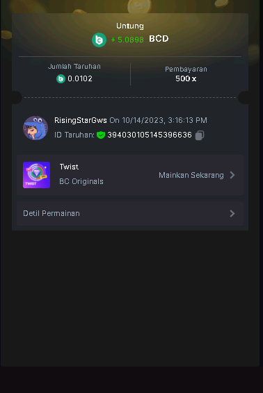 Moderator Giandreas Posted October 14, 2023 Moderator Share Posted October 14, 2023 Read Carefully Before Start To Hunt Forum Daily Challenges #387Hunt : twist Win the highest pay out Min Payout : min x17 Min Level 4️Duration Starting : Now End time : 23.59 UTC Time How to Join? Make screenshot + paste your bet link + UID or Profile link Any coin, with min bet 0.01 USD is allowed (jb/bb/bcl not allowed)Reward Prizes 1st Place.....$7 BCD 2nd Place.....$5 BCD 3rd Place.....$4 BCD 4th Place.....$3 BCD 5th Place.....$2 BCD 🏵 Winners will be announcing next day after Roll Point! 1 Link to comment Share on other sites More sharing options...