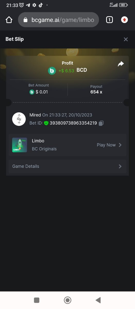 Moderator Giandreas Posted October 20, 2023 Moderator Share Posted October 20, 2023 Read Carefully Before Start To Hunt Forum Daily Challenges #393Hunt : Limbo Win the highest pay out Min Payout : 20x Min Level 4️Duration Starting : Now End time : 23.59 UTC Time How to Join? Make screenshot + paste your bet link + UID or Profile link Any coin, with min bet 0.01 USD is allowed (jb/bb/bcl not allowed)Reward Prizes 1st Place.....$7 BCD 2nd Place.....$5 BCD 3rd Place.....$4 BCD 4th Place.....$3 BCD 5th Place.....$2 BCD 🏵 Winners will be announcing next day after Roll Point! Link to comment Share on other sites More sharing options...