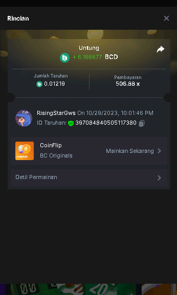 Moderator Giandreas Posted October 29, 2023 Moderator Share Posted October 29, 2023 Read Carefully Before Start To Hunt Forum Daily Challenges #402Hunt : Coinflip Win the highest pay out Min Payout : Series 5 Min Level 4 ️Duration Starting : Now End time : 23.59 UTC Time How to Join? Make screenshot + paste your bet link + UID or Profile link Any coin, with min bet 0.01 USD is allowed (jb/bb/bcl not allowed) Reward Prizes 1st Place.....$7 BCD 2nd Place.....$5 BCD 3rd Place.....$4 BCD 4th Place.....$3 BCD 5th Place.....$2 BCD 🏵 Winners will be announcing next day after Roll Point! Link to comment Share on other sites More sharing options...