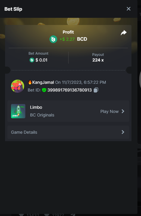 Moderator Giandreas Posted November 7, 2023 Moderator Share Posted November 7, 2023 Read Carefully Before Start To Hunt Forum Daily Challenges #411Hunt : Limbo Win the highest pay out Min Payout : x20 Min Level 4️Duration Starting : Now End time : 23.59 UTC Time How to Join? Make screenshot + paste your bet link + UID or Profile link Any coin, with min bet 0.01 USD is allowed (jb/bb/bcl not allowed)Reward Prizes 1st Place.....$7 BCD 2nd Place.....$5 BCD 3rd Place.....$4 BCD 4th Place.....$3 BCD 5th Place.....$2 BCD 🏵 Winners will be announcing next day after Roll Point! 1 Link to comment Share on other sites More sharing options...