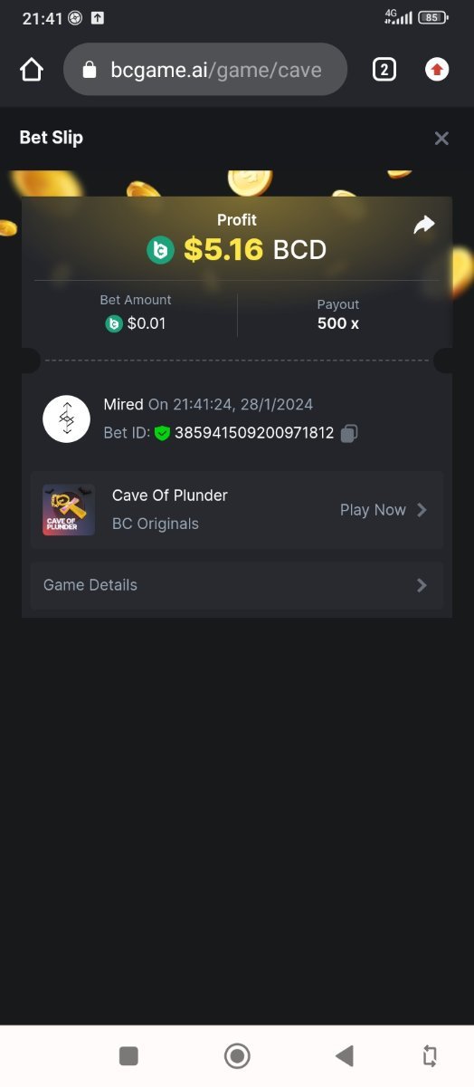 Moderator Giandreas Posted January 28, 2024 Moderator Share Posted January 28, 2024 Read Carefully Before Start To Hunt Forum Daily Challenges #493Hunt : Cave of Plunder Win the highest pay out Min Payout : x17 Min Level 10 ️Duration Starting : Now End time : 23.59 UTC Time How to Join? Make screenshot + paste your bet link + UID or Profile link Any coin, with min bet 0.01 USD is allowed (jb/bb/bcl not allowed) Reward Prizes 1st Place.....$7 BCD 2nd Place.....$5 BCD 3rd Place.....$4 BCD 4th Place.....$3 BCD 5th Place.....$2 BCD 🏵 Winners will be announcing next day after Roll Point! Link to comment Share on other sites More sharing options...