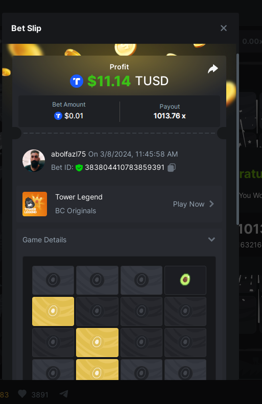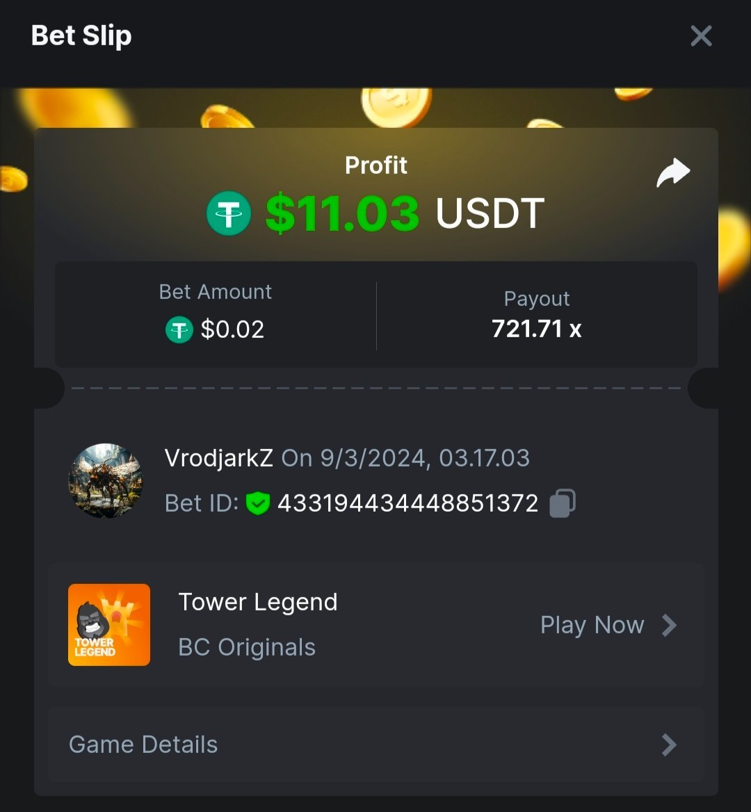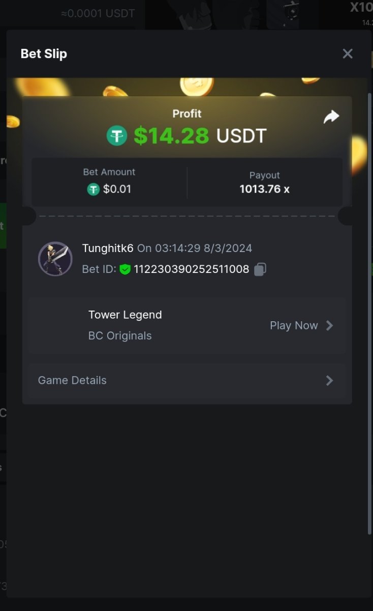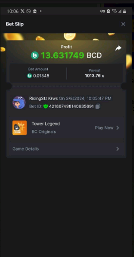 Moderator Giandreas Posted March 8, 2024 Moderator Share Posted March 8, 2024 Read Carefully Before Start To Hunt Forum Daily Challenges #533Hunt : Tower Legend Win the highest pay out Min Payout : x13 Min Level 10️Duration Starting : Now End time : 23.59 UTC Time How to Join? Make screenshot + paste your bet link + UID or Profile link Any coin, with min bet 0.01 USD is allowed (jb/bb/bcl not allowed)Reward Prizes 1st Place.....$7 BCD 2nd Place.....$5 BCD 3rd Place.....$4 BCD 4th Place.....$3 BCD 5th Place.....$2 BCD 🏵 Winners will be announcing next day after Roll Point! Link to comment Share on other sites More sharing options...
