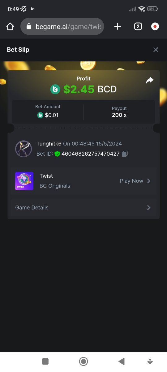 Moderator Giandreas Posted May 15, 2024 Moderator Share Posted May 15, 2024 Read Carefully Before Start To Hunt Forum Daily Challenges #601Hunt : Twist Win the highest pay out Min Payout : x17 Min Level 10️Duration Starting : Now End time : 23.59 UTC Time How to Join? Make screenshot + paste your bet link + UID or Profile link Any coin, with min bet 0.01 USD is allowed (jb/bb/bcl not allowed)Reward Prizes 1st Place.....$7 BCD 2nd Place.....$5 BCD 3rd Place.....$4 BCD 4th Place.....$3 BCD 5th Place.....$2 BCD 🏵 Winners will be announcing next day after Roll Point! Link to comment Share on other sites More sharing options...