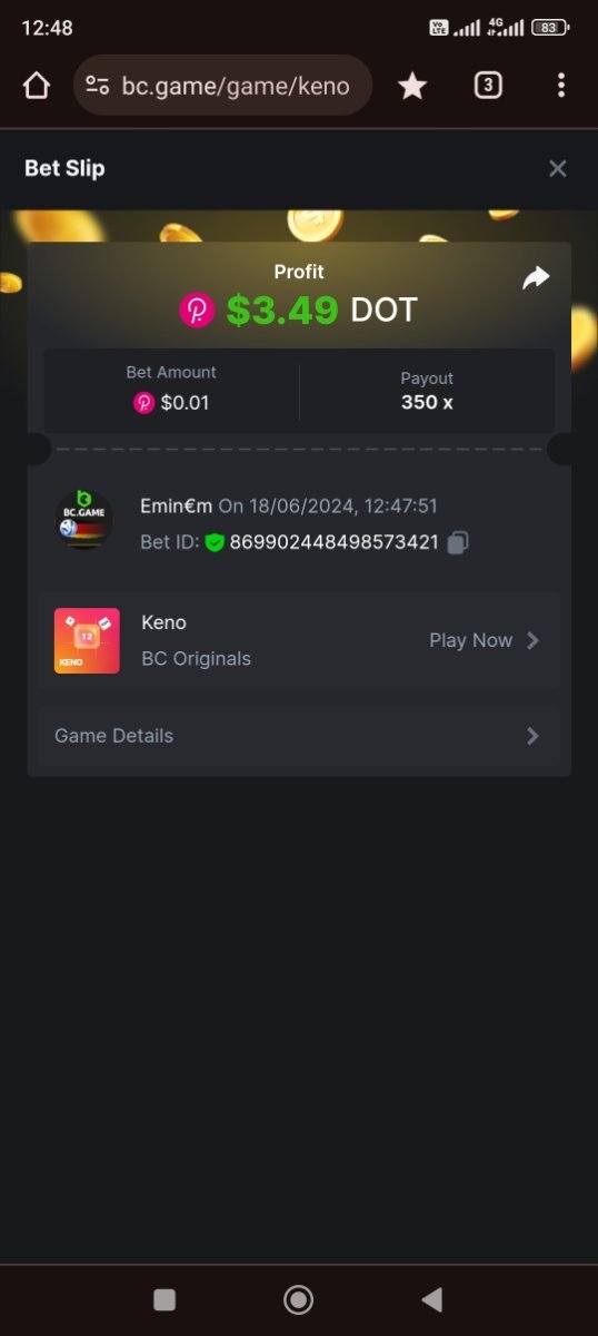 Moderator Giandreas Posted June 18, 2024 Moderator Share Posted June 18, 2024 Read Carefully Before Start To Hunt Forum Daily Challenges #635Hunt : Keno Win the highest pay out Min Payout : 90x Min Level 10 ️Duration Starting : Now End time : 23.59 UTC Time How to Join? Make screenshot + paste your bet link + UID or Profile link Any coin, with min bet 0.01 USD is allowed (jb/bb/bcl not allowed) Reward Prizes 1st Place.....$7 BCD 2nd Place.....$5 BCD 3rd Place.....$4 BCD 4th Place.....$3 BCD 5th Place.....$2 BCD 🏵 Winners will be announcing next day after Roll Point! Link to comment Share on other sites More sharing options...