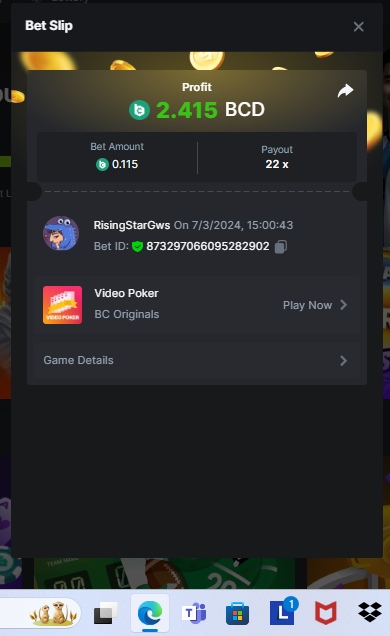 1st place . . . .  7 bcd  - Baccarar - 60x  0.59