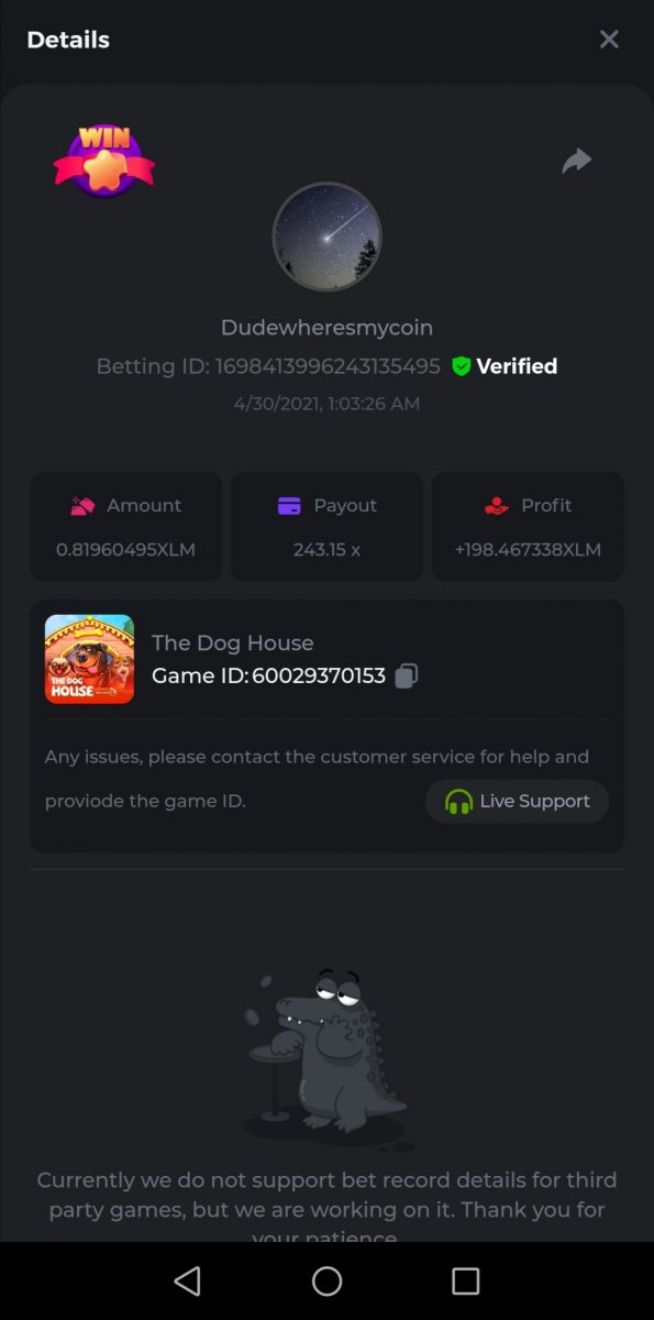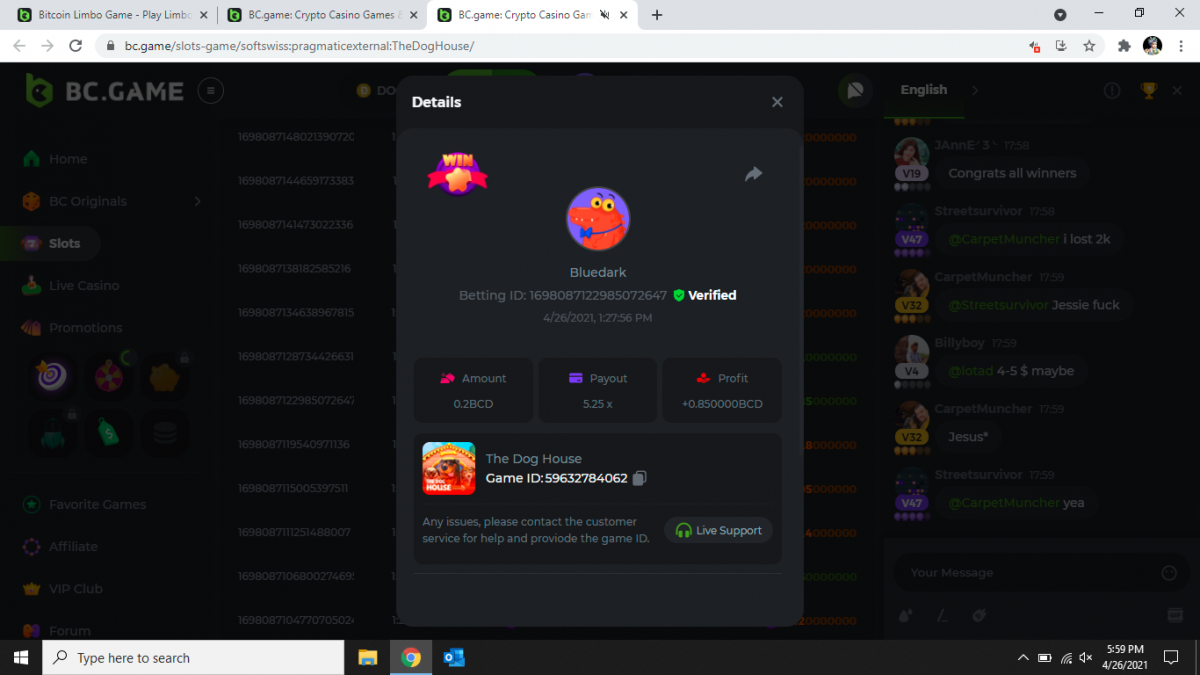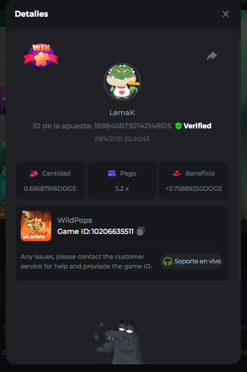 Dudewheresmycoin Posted April 26, 2021 Share Posted April 26, 2021 Here are my best results, so far 1) The Dog House - Game ID 60029370153 - Betting ID: 1698413996243135495 - Payout 243.15x 2) Loco the Monkey - Game ID 60032149910 - Betting ID: 1698415979334267399 - Payout 56x 3) WildPops - Game ID 9992306843 - Betting ID: 1698113370303719808 - Payout 74.70x Link to comment Share on other sites More sharing options...