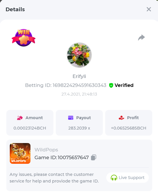luntik777 Posted May 1, 2021 Share Posted May 1, 2021 my screenshot hidden im write ID in manual mode WildPops Betting ID : 1698452806487523456 Game ID : 10234224763 The Dog House Betting ID : 1698453893684649856 Game ID : 60069720677 Loco the Monkey Betting ID : 1698454418032199296 Game ID : 60070367292 Link to comment Share on other sites More sharing options...