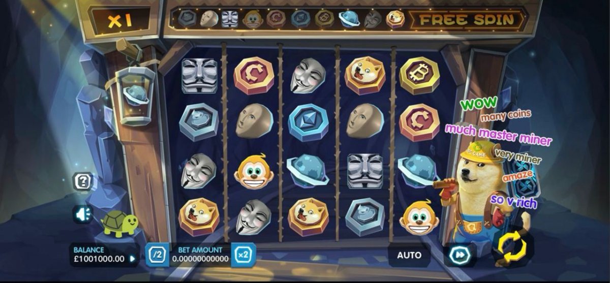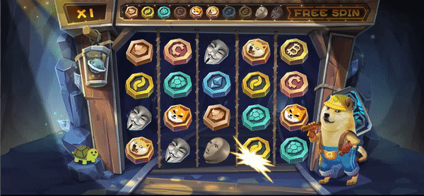 is a free spins feature that is triggerd by getting a Doge dog in the 1st a turtle in the second  row  a monkey int the third row and a $Shiba in the fourth row.
