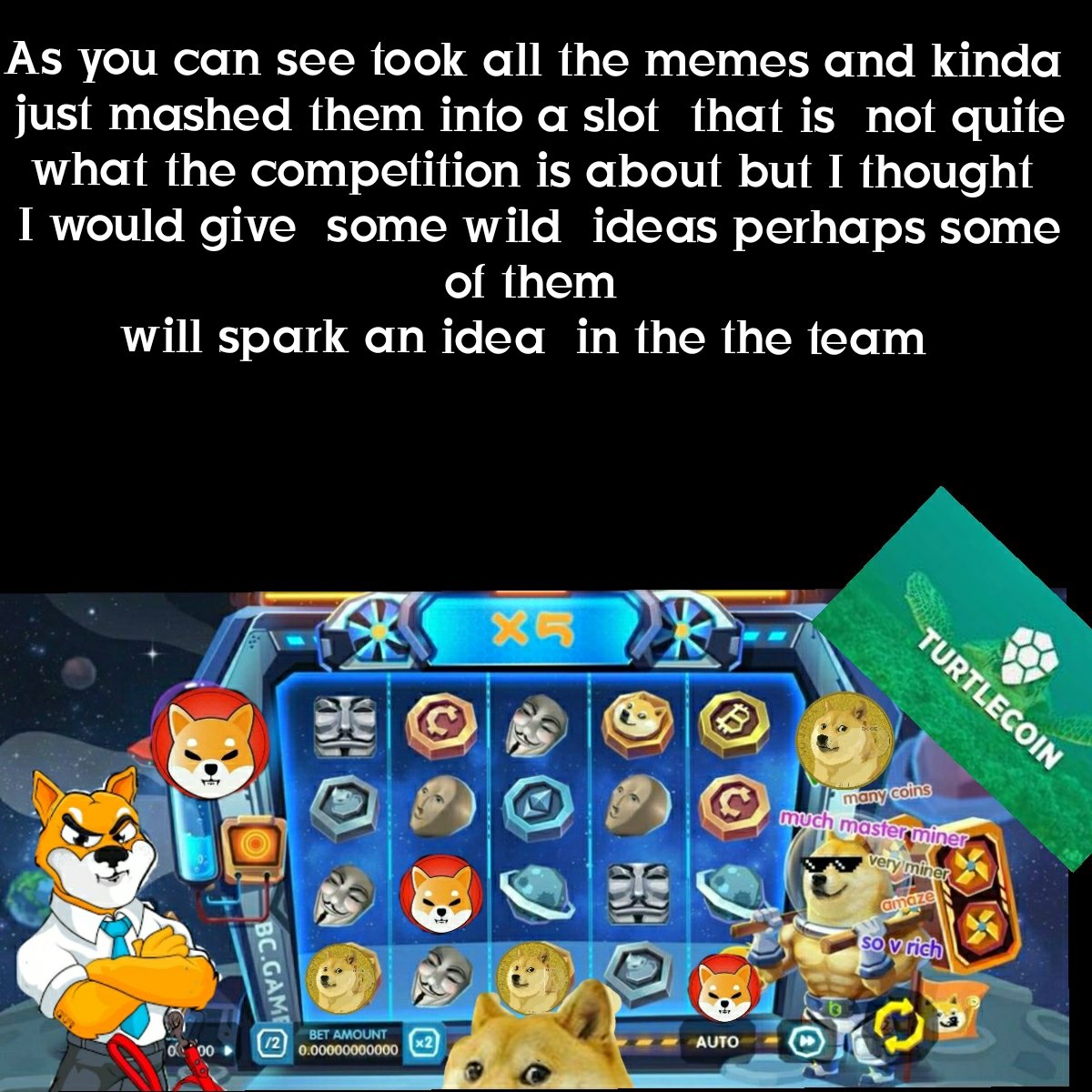 I thought about adding a feature that after each spin the meme dogs move across the lines  and the Doge coin dog has two tokens that may appear if combined with the Shib dogs payouts are higher. This Is unfortunately all I have so far I will try to figure out how the WWM will work but i have one fun idea t add might be a good idea to run a promotion like the redtrump an greenbiden competition  dotn know if that is what it was called was a while ago but I could be something in that line and this slot can earn points for the event.