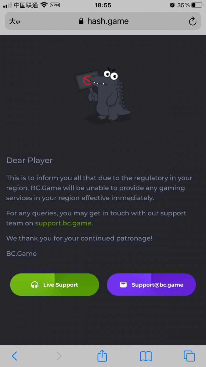 BTC No 1 Posted June 15, 2021 Share Posted June 15, 2021 还在玩这个游戏吗,我来自中国,现在已经不能打开bc.game了,我账户里还有许多币我想把它取出来,如果你愿意帮助我,我会回报你的 Are you still playing this game? I'm from China. Now I can't open BC. Game. I still have a lot of money in my account. I want to withdraw it. If you are willing to help me, I will repay you Link to comment Share on other sites More sharing options...