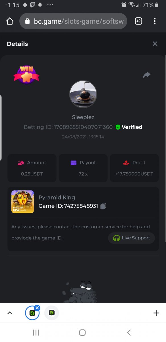 Shiloh_Phx Posted August 25, 2021 Share Posted August 25, 2021 Bet ID: #27151670848782991 Egyptian Adventures 269.4x Betid: 74379070287 pyramid king 64x Link to comment Share on other sites More sharing options...