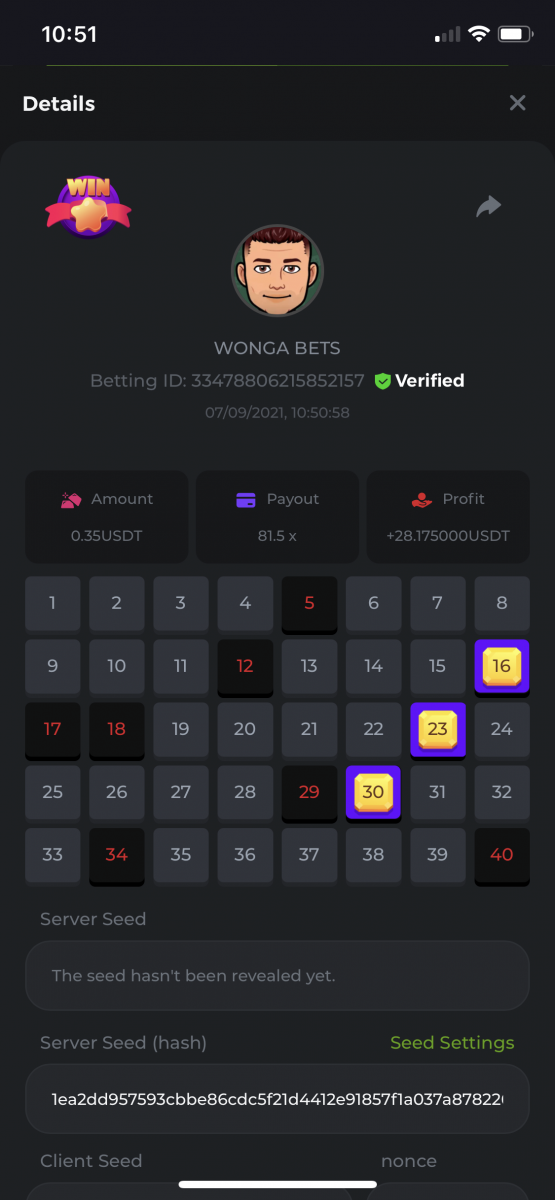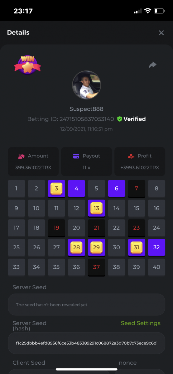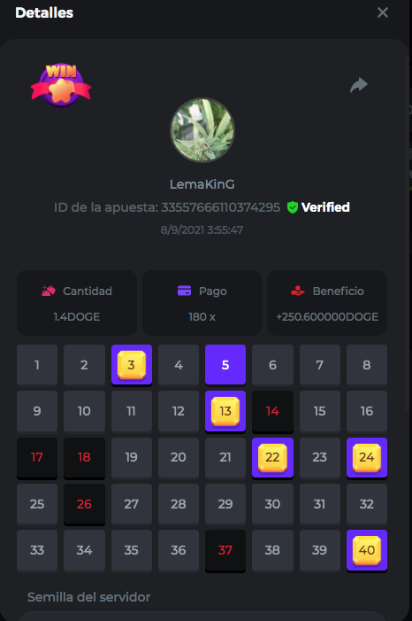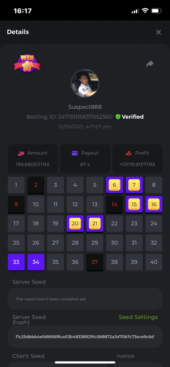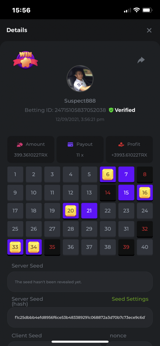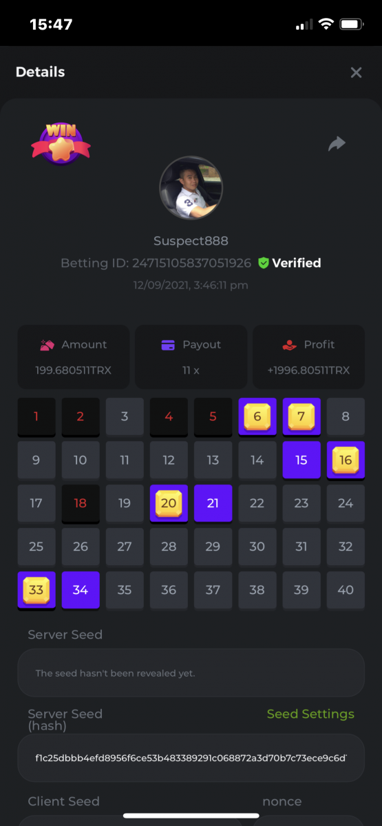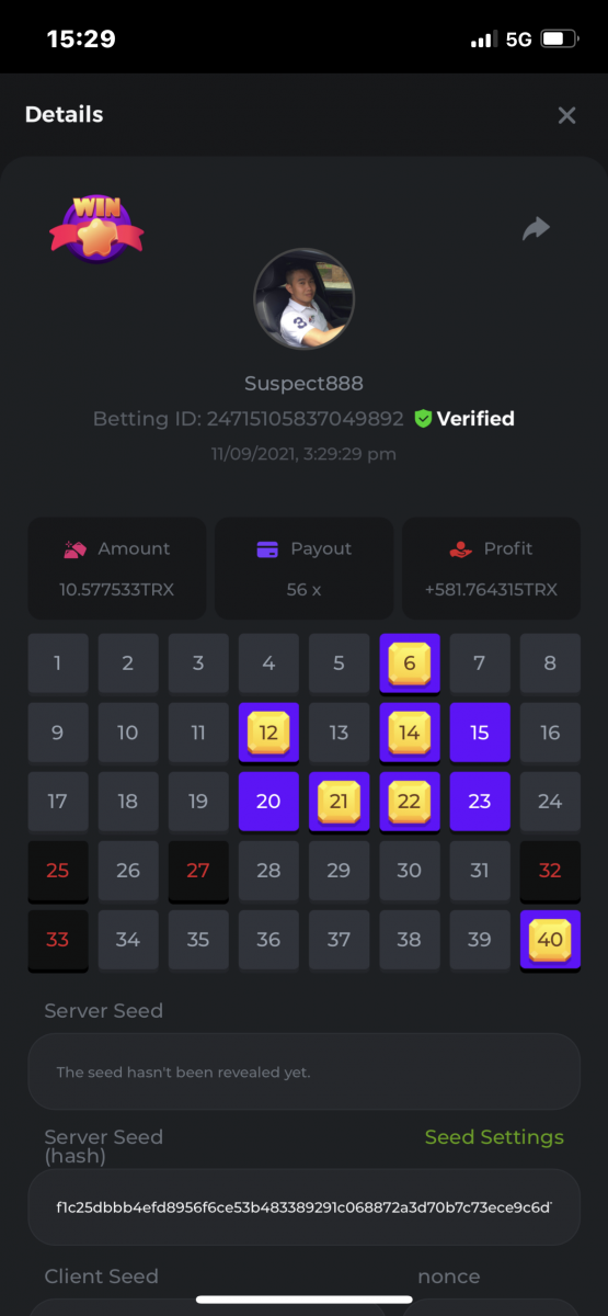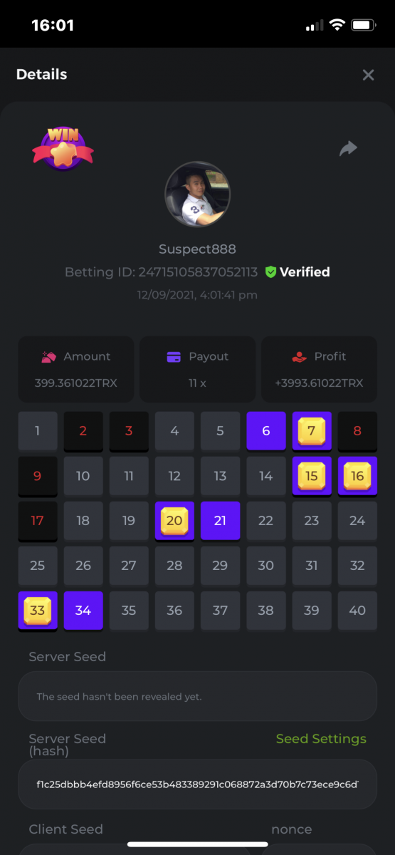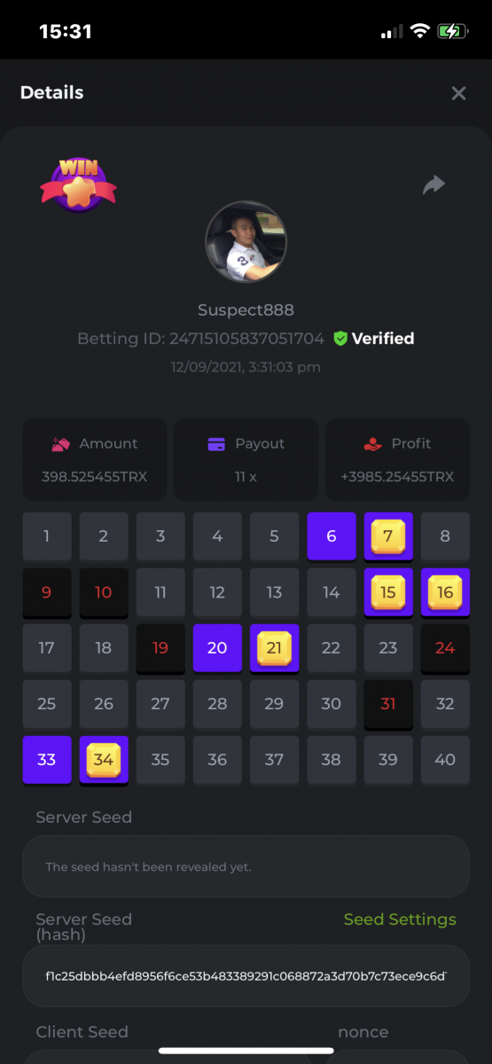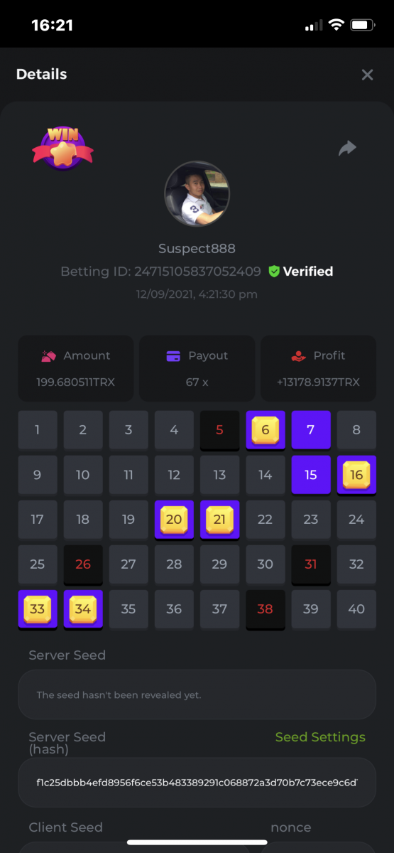 Mongthehung Posted September 7, 2021 Share Posted September 7, 2021 13 hours ago, digitaldash said: TOP TIER CHALLENGE #3 Starts: 06:00, September 7 GMTEnds: 06:00, September 14 GMT Welcome back! You may be wondering why this challenge is only $2,000. We'll be having two separate challenges going on this week, with the second part coming very soon so keep a lookout for that! This week, we have a KENO challenge! What's the Challenge? Complete as many of the following 20 payouts on either KENO Multiplayer or KENO Single Player. You must hit a MINIMUM of 5 of the payouts to qualify! 5.10x - 11x - 17.1x - 26x - 30x - 56x - 67x - 81.5x - 100x - 180x - 259x - 270x - 390x - 450x - 500x - 600x - 710x - 800x - 900x - 1000x Each payout you hit above counts as 1 point, with a maximum of 20 points. If there is a tie, the player with the higher total bet amount (in USD) shall be the winner. The payouts must be EXACT hits (56x and 50x are not the same) - if you can't find a payout, try changing the risk level to medium or high. Minimum VIP Tier Must be VIP10 or higher in order to enter this challenge. Minimum Bet Size $0.35 equivalent (please check the individual coin amounts below) Eligible Coins All coins are eligible (excluding JB) Available Prizes 1st Place......$500 2nd Place.....$375 3rd Place.....$250 4th Place......$125 5th-25th......$25 Participation Pool.......$250 split equally How to Enter To enter, copy the bet ID of the bet you'd like to submit Once you've copied it, post it as a reply to this thread like so: Betting ID: 1708854428417660423 In the same post, upload a screenshot of your win by clicking the game ID WITH VIEW IN USD mode ENABLED (accessible at the bottom of dropdown menu for your wallet up top. This way, we can ensure that your bet indeed met the minimum requirement at the time of placing it: Please combine all of your hits together in a SINGLE post. Edit, don't create a new post. Bets must be posted within 24 hours of placing bet in order to keep things fair for everyone. Bets must be made during the specified time windows stated above. This thread will lock automatically when the time period is over. One (1) entry per household. Anyone found to be attempting to win multiple prizes will be disqualified from this challenge as well as all future challenges. Furthermore, you will go on the WALL OF SHAME for all to see that you are a scam! Failure to follow instructions will result in your submission being null and void. And let the races begin! Good luck everyone, look forward to seeing who comes out on top this week Link to comment Share on other sites More sharing options...