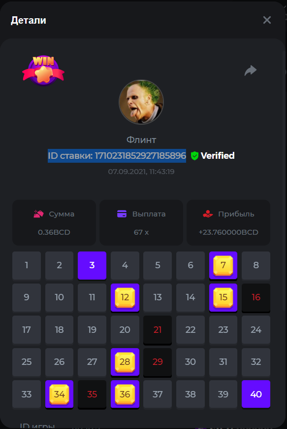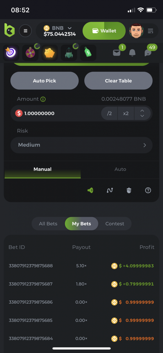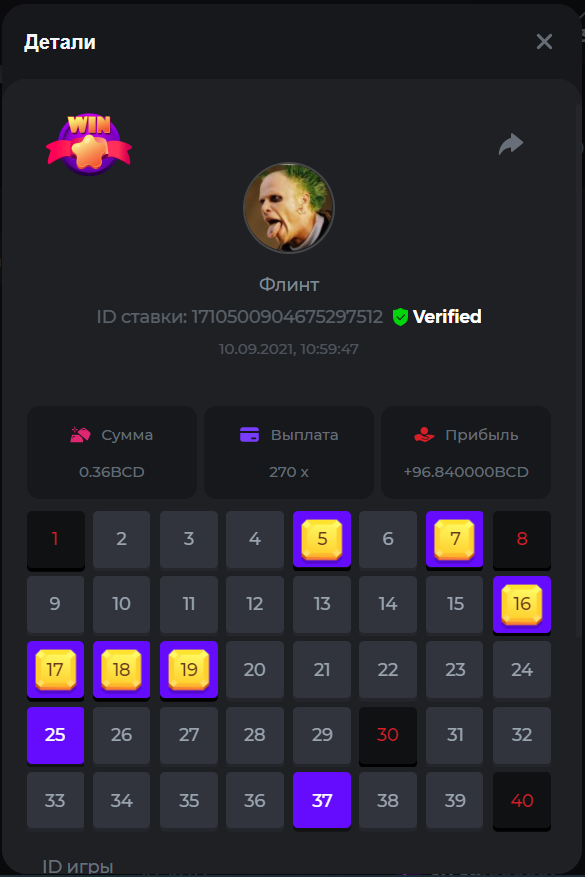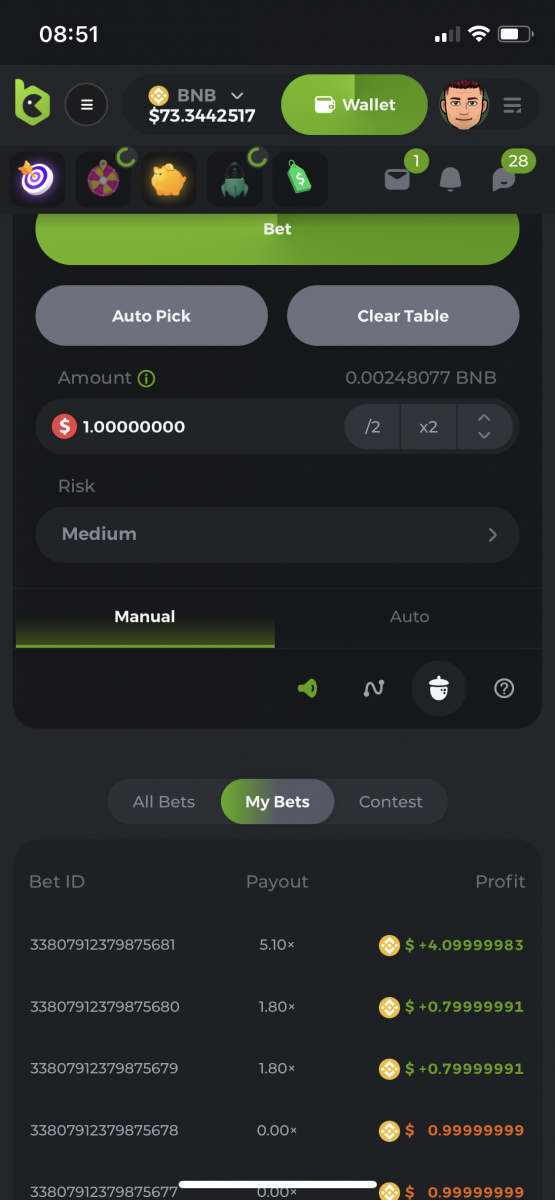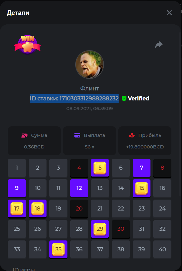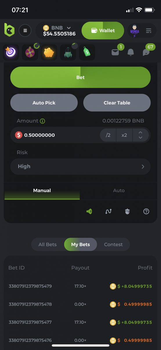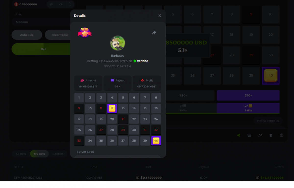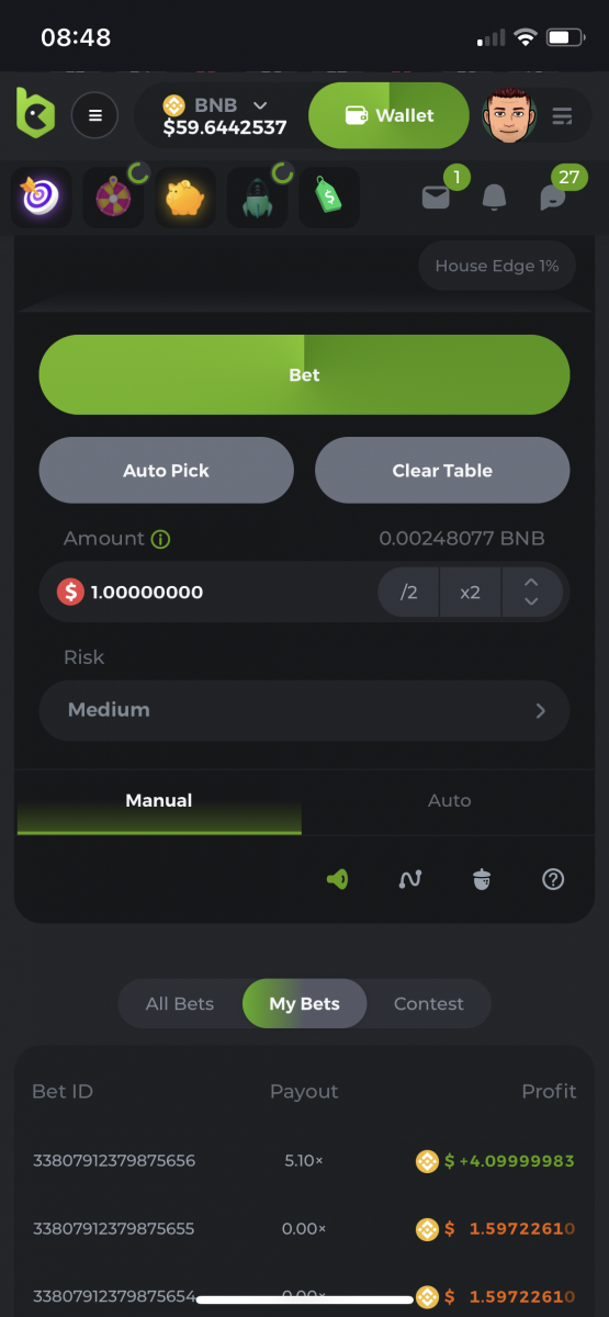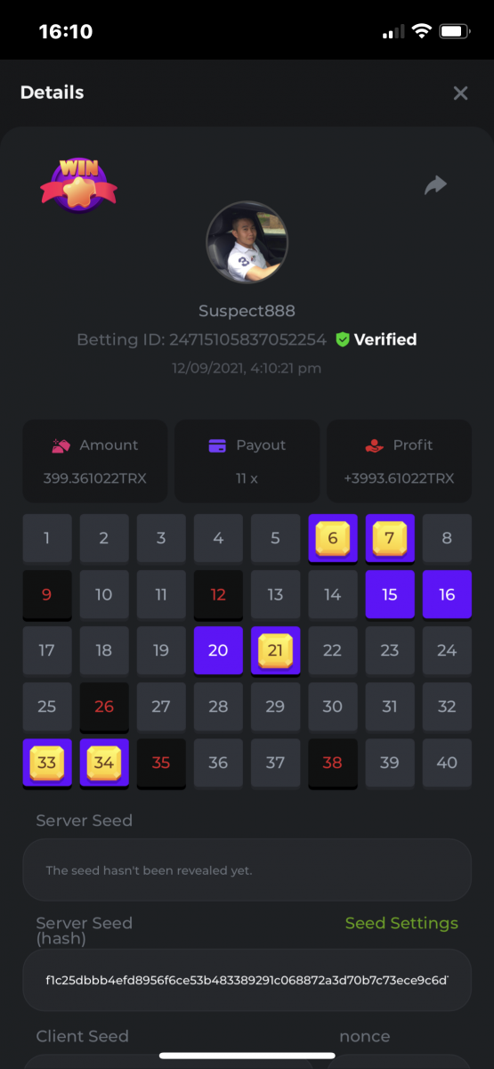 Mongthehung Posted September 7, 2021 Share Posted September 7, 2021 13 hours ago, digitaldash said: TOP TIER CHALLENGE #3 Starts: 06:00, September 7 GMTEnds: 06:00, September 14 GMT Welcome back! You may be wondering why this challenge is only $2,000. We'll be having two separate challenges going on this week, with the second part coming very soon so keep a lookout for that! This week, we have a KENO challenge! What's the Challenge? Complete as many of the following 20 payouts on either KENO Multiplayer or KENO Single Player. You must hit a MINIMUM of 5 of the payouts to qualify! 5.10x - 11x - 17.1x - 26x - 30x - 56x - 67x - 81.5x - 100x - 180x - 259x - 270x - 390x - 450x - 500x - 600x - 710x - 800x - 900x - 1000x Each payout you hit above counts as 1 point, with a maximum of 20 points. If there is a tie, the player with the higher total bet amount (in USD) shall be the winner. The payouts must be EXACT hits (56x and 50x are not the same) - if you can't find a payout, try changing the risk level to medium or high. Minimum VIP Tier Must be VIP10 or higher in order to enter this challenge. Minimum Bet Size $0.35 equivalent (please check the individual coin amounts below) Eligible Coins All coins are eligible (excluding JB) Available Prizes 1st Place......$500 2nd Place.....$375 3rd Place.....$250 4th Place......$125 5th-25th......$25 Participation Pool.......$250 split equally How to Enter To enter, copy the bet ID of the bet you'd like to submit Once you've copied it, post it as a reply to this thread like so: Betting ID: 1708854428417660423 In the same post, upload a screenshot of your win by clicking the game ID WITH VIEW IN USD mode ENABLED (accessible at the bottom of dropdown menu for your wallet up top. This way, we can ensure that your bet indeed met the minimum requirement at the time of placing it: Please combine all of your hits together in a SINGLE post. Edit, don't create a new post. Bets must be posted within 24 hours of placing bet in order to keep things fair for everyone. Bets must be made during the specified time windows stated above. This thread will lock automatically when the time period is over. One (1) entry per household. Anyone found to be attempting to win multiple prizes will be disqualified from this challenge as well as all future challenges. Furthermore, you will go on the WALL OF SHAME for all to see that you are a scam! Failure to follow instructions will result in your submission being null and void. And let the races begin! Good luck everyone, look forward to seeing who comes out on top this week Link to comment Share on other sites More sharing options...