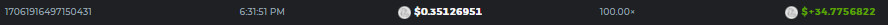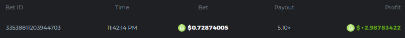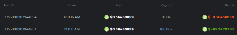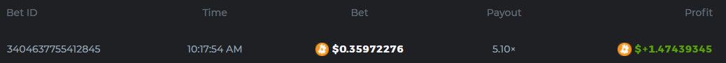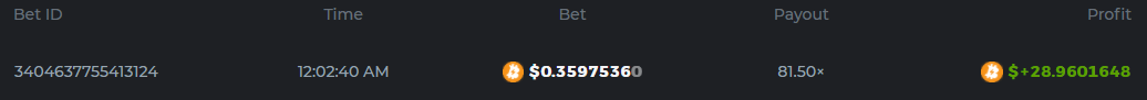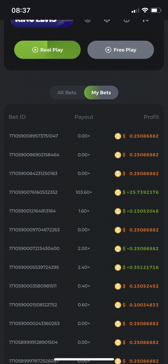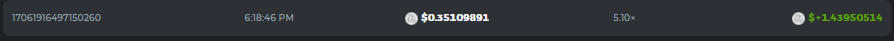 bassabar Posted September 7, 2021 Share Posted September 7, 2021 total: 12 points Total betamount: 5,97$ (0,50$ average) Multiplyer: 5.1x Betid: 14766978032043776 Betamount: 2,00$ LTC to dollar: Multiplyer: 11x Betid: 14766978032044206 Betamount: 0,36$ Multiplyer: 17.1 Betid: 14766978032044245 Betamount: 0,36$ Multiplyer: 26x Betid: 14766978032044240 Betamount: 0,36$ Multiplyer: 30x Betid: 14766978032044337 Betamount: 0,36$ Multiplyer: 56x Betid: 14766978032046020 Betamount: 0,36$ Multiplyer: 67x Betid: 14766978032044453 Betamount: 0,36$ Multiplyer: 81.5x Betid: 14766978032046063 Betamount: 0,36$ Multiplyer: 100x Betid: 14766978032050445 Betamount: 0,404$ LTC to dollar: Multiplyer: 180x Betid: 14766978032050479 Betamount: 0,36$ LTC to dollar: Multiplyer: 259x Betid: 14766978032051052 Betamount: 0,37$ LTC to dollar: Multiplyer: 270x Betid: 14766978032052857 Betamount: 0,36$ LTC to dollar: Link to comment Share on other sites More sharing options...