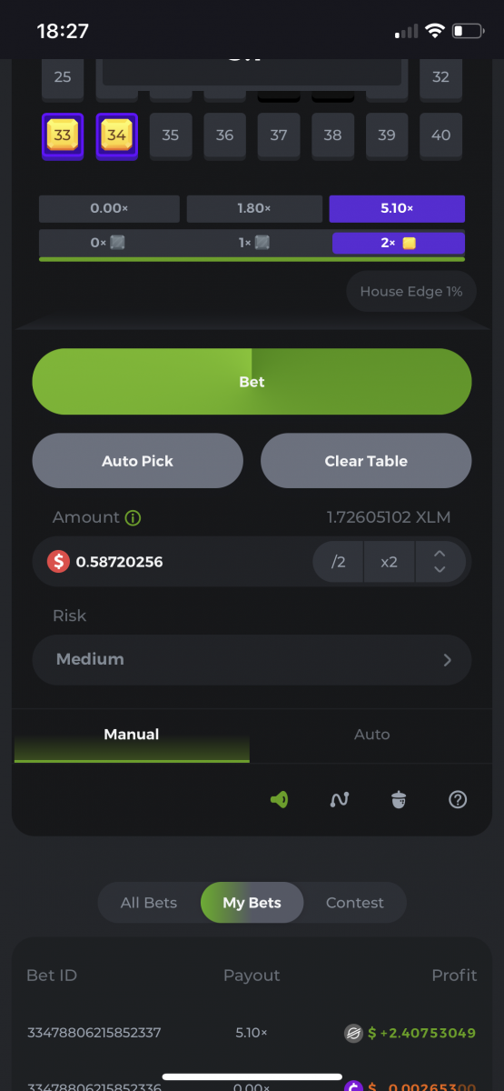 W0NGA Posted September 7, 2021 Share Posted September 7, 2021 BETTING ID MULTIPLAYER BET AMOUNT 33807912379875736 5.1 $8.00 33807912379875716 5.1 $4.00 33807912379875688 5.1 $1.00 33807912379875681 5.1 $1.00 33807912379875675 5.1 $4.00 33807912379875656 5.1 $1.00 33807912379875621 11 $0.80 33807912379875477 17.1 $0.50 33692382054580234 11 $0.77 33591437438222506 5.1 $0.82 33478806215852354 5.1 $4.70 33478806215852337 5.1 $0.59 33478806215852157 81.5 $0.35 33478806215852148 26 $1.00 33478806215852061 17.1 $0.70 33219896997315020 11 $0.70 33219896997314864 5.1 $0.70 33219896997314853 5.1 $0.70 33219896997314831 5.1 $2.80 33219896997314785 5.1 $0.70 Betting ID: 33914698151756391 30x $0.35 20 points achieved, minimum of 5 different multiples hit above $0.35. I have many more wins, but I capped it at the max 20 points… ps. do more keno challenges all images attached, please notify me if any are missing / unclear. Link to comment Share on other sites More sharing options...