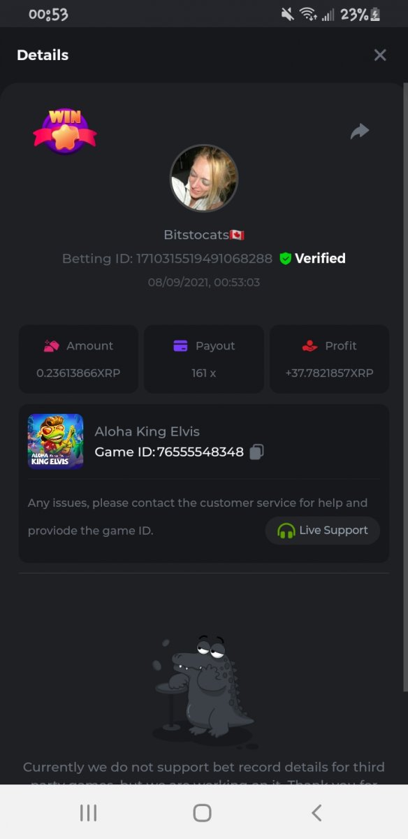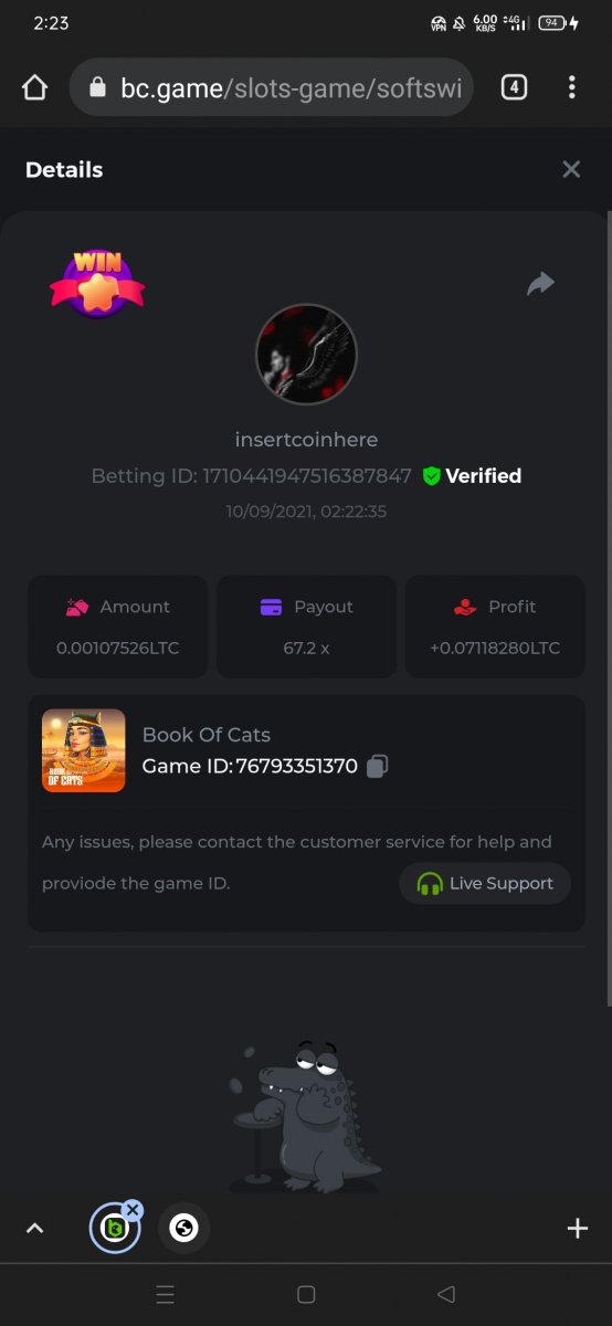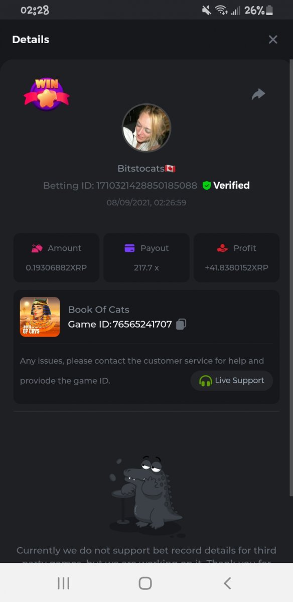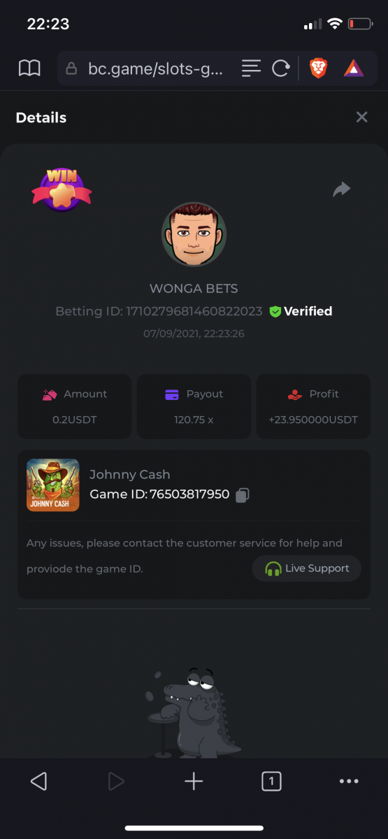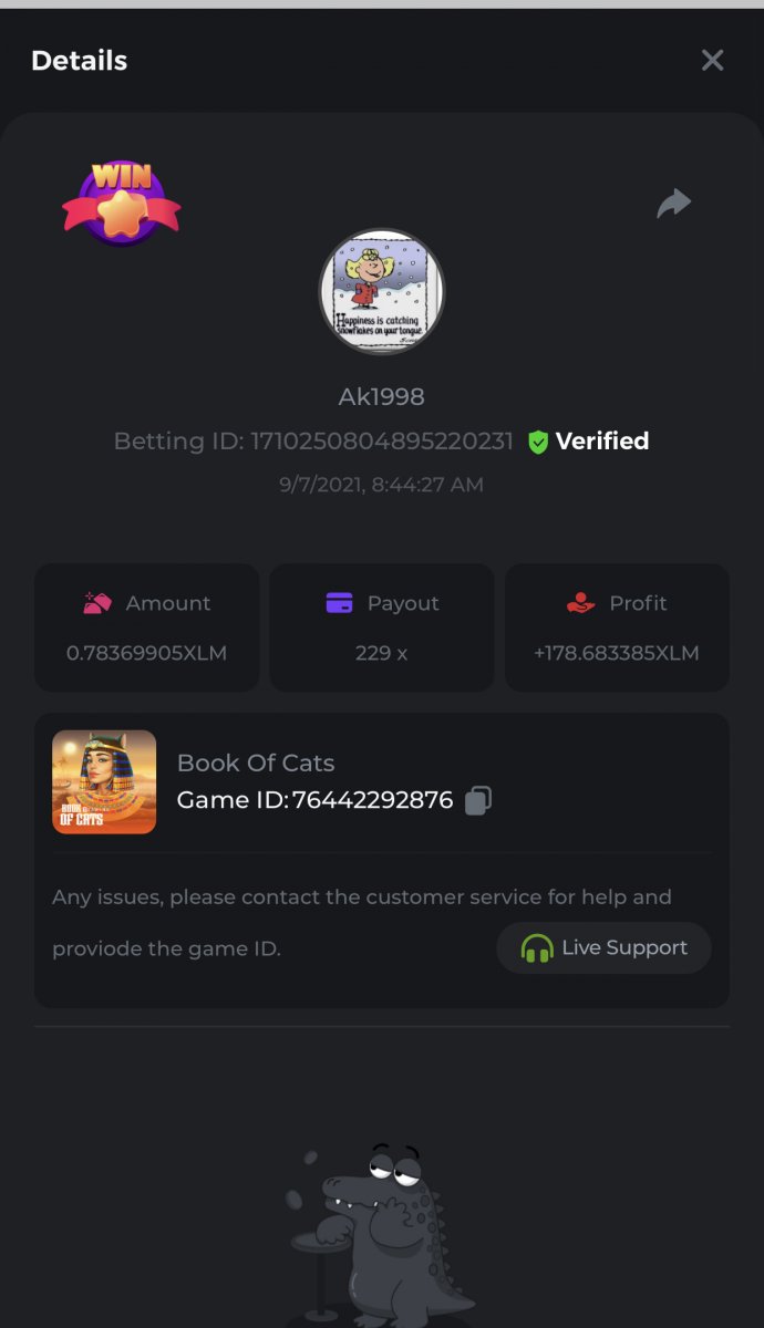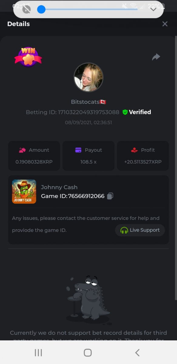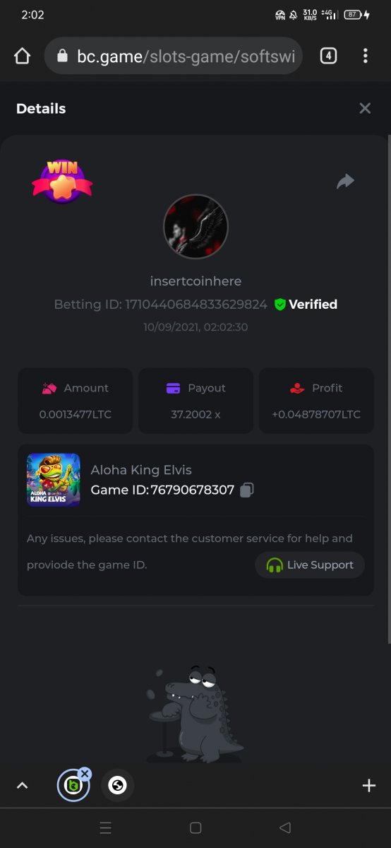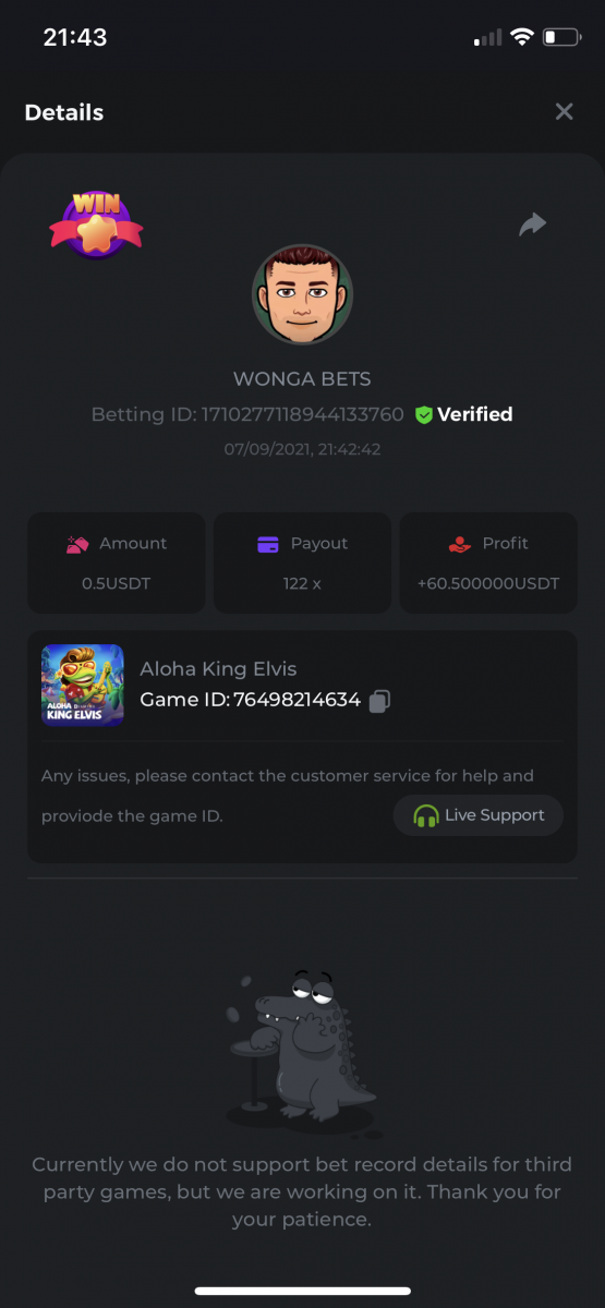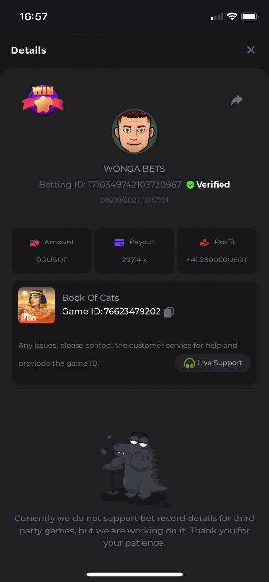 • In the same post, upload a screenshot of your win by clicking the game ID WITH VIEW IN USD mode ENABLED (accessible at the bottom of dropdown menu for your wallet up top. This way, we can ensure that your bet indeed met the minimum requirement at the time of placing it: