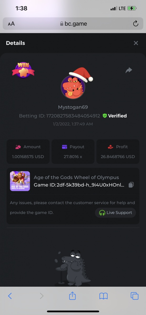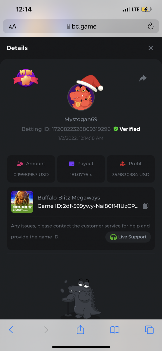 W0NGA Posted January 2, 2022 Share Posted January 2, 2022 Betting ID: 1720824847497636359 Buffalo Blitz 227.4x Link to comment Share on other sites More sharing options...