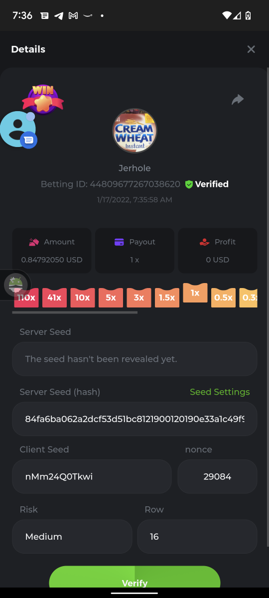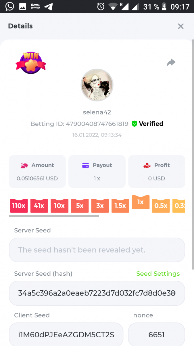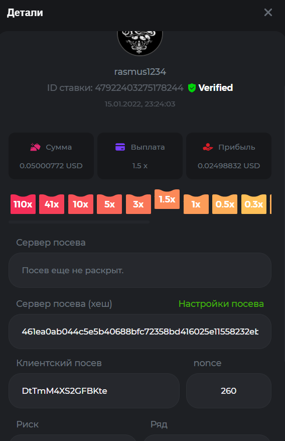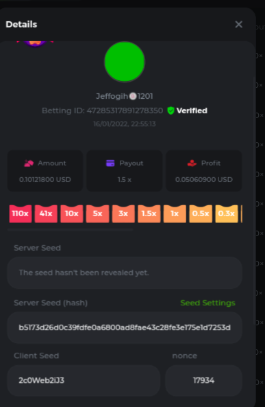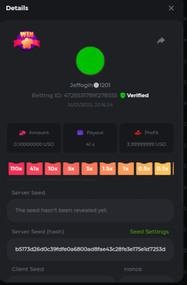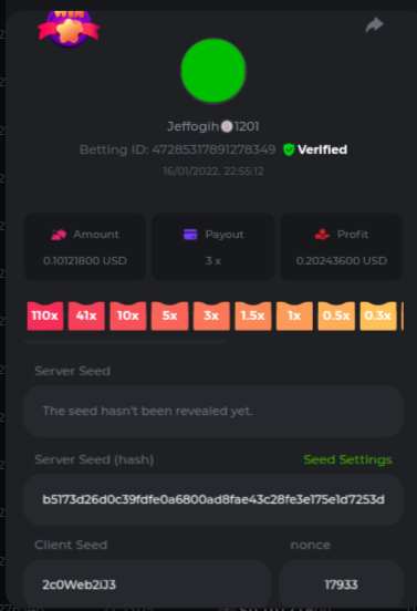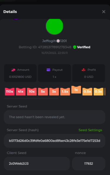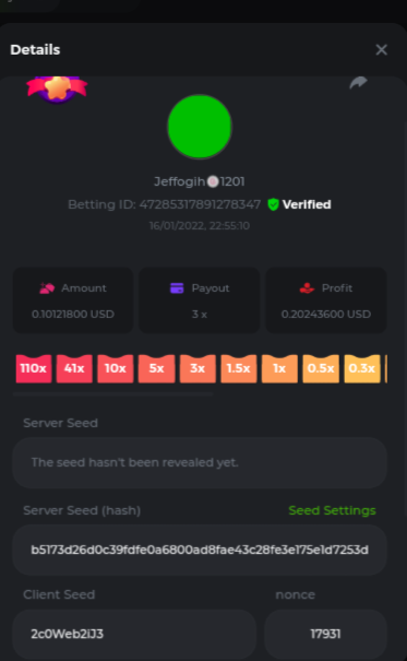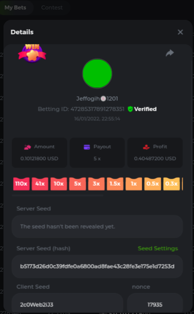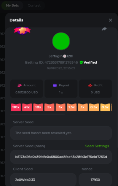 Bet that shows exactly 110x - List of participants who completed the extra bounty.