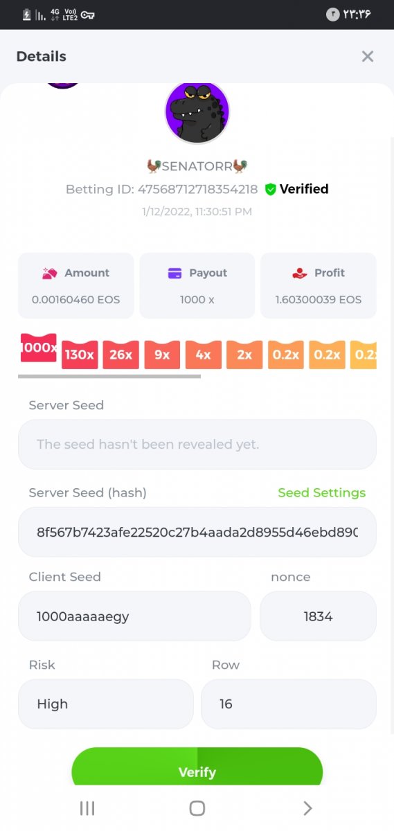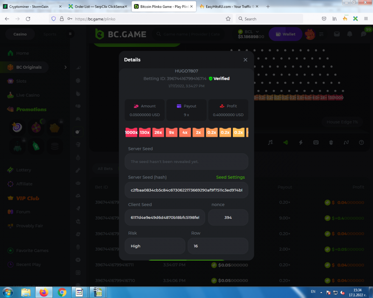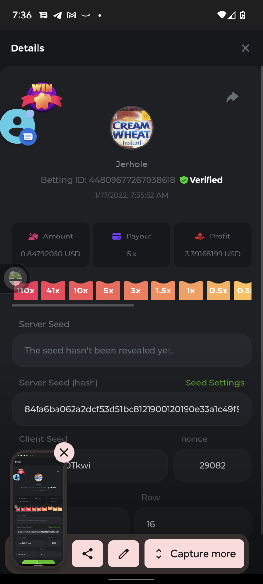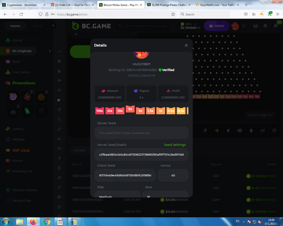 Bet that shows exactly 110x - List of participants who completed the extra bounty.