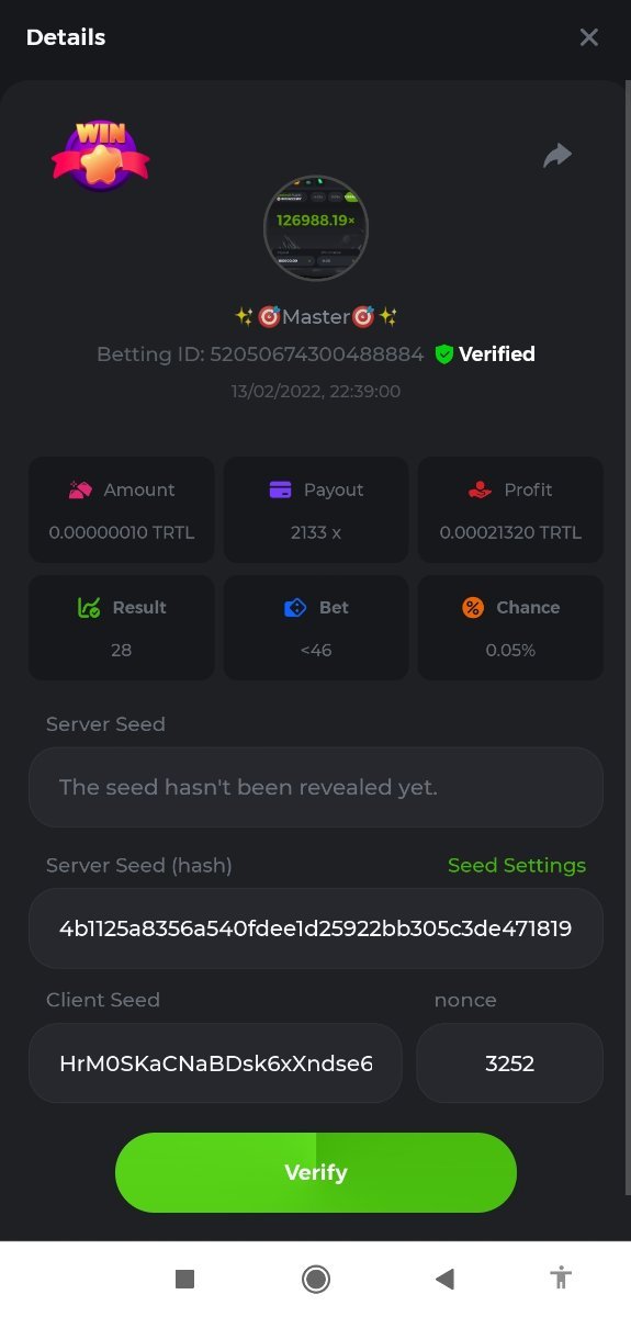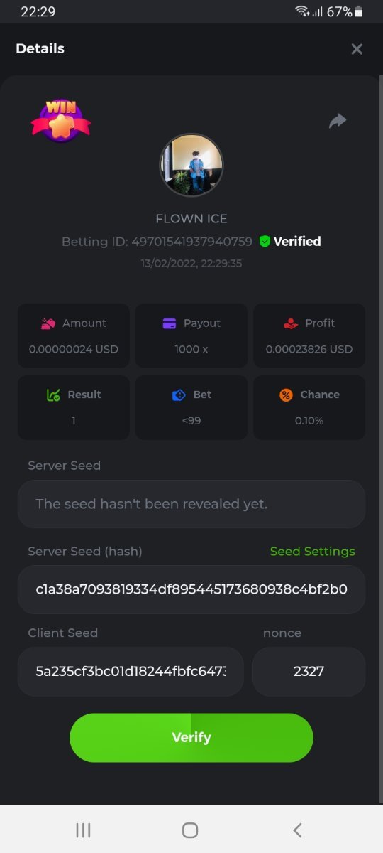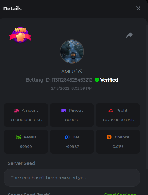 ThePersonYouLove Posted February 13, 2022 Share Posted February 13, 2022 1 minute ago, amirhaji said: Betting ID:11311264525454240 i got 29900x but i missed click to stop it u 1st Link to comment Share on other sites More sharing options...