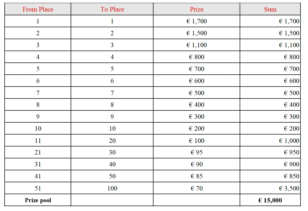 6. The 100 first players in the leaderboard will share a prize of 15,000 EUR!