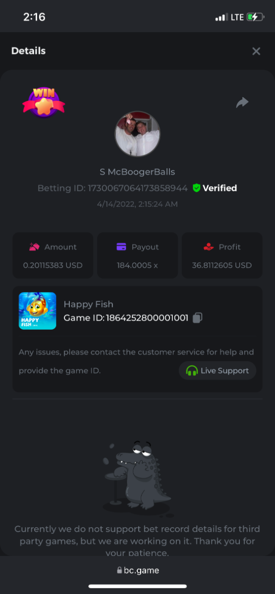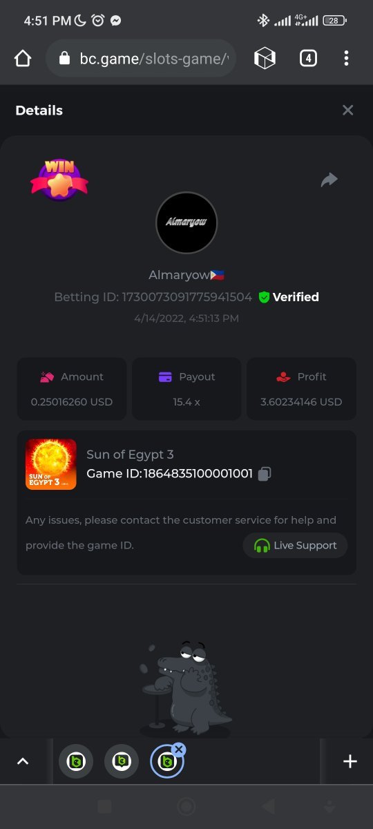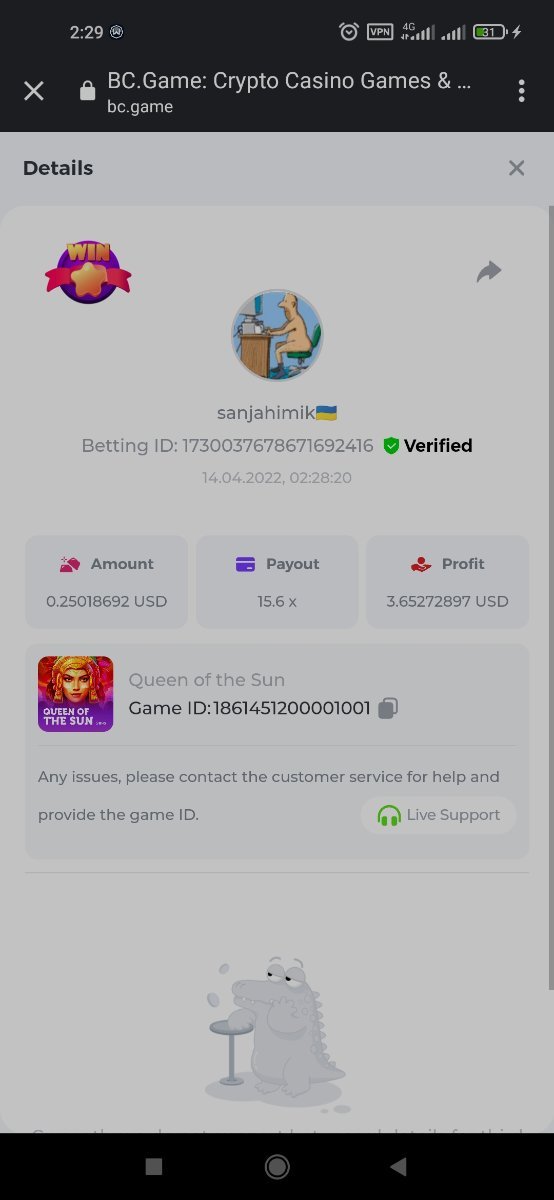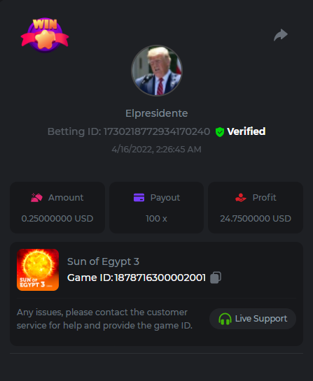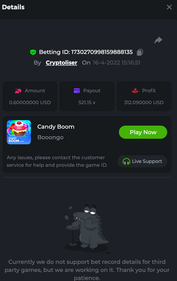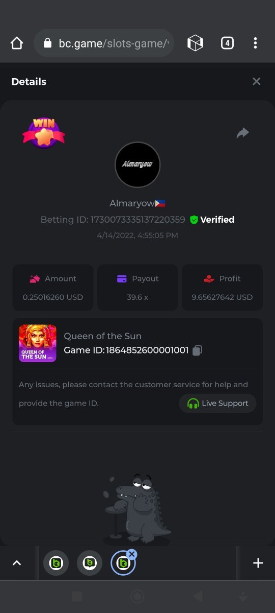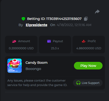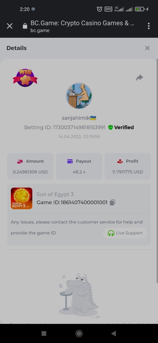 • In the same post, upload a screenshot of your win by clicking the game ID WITH VIEW IN USD mode ENABLED (accessible at the bottom of dropdown menu for your wallet up top, and Submit Reply. Done! This way, we can ensure that your bet indeed met the minimum requirement at the time of placing it: