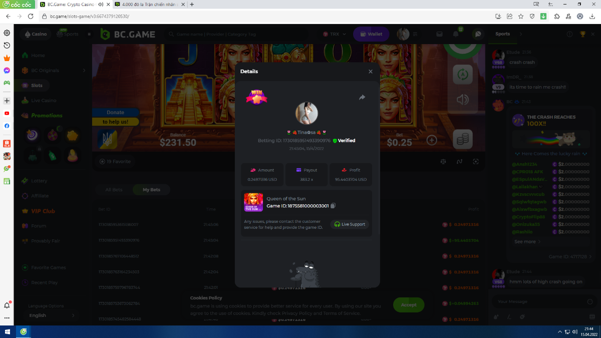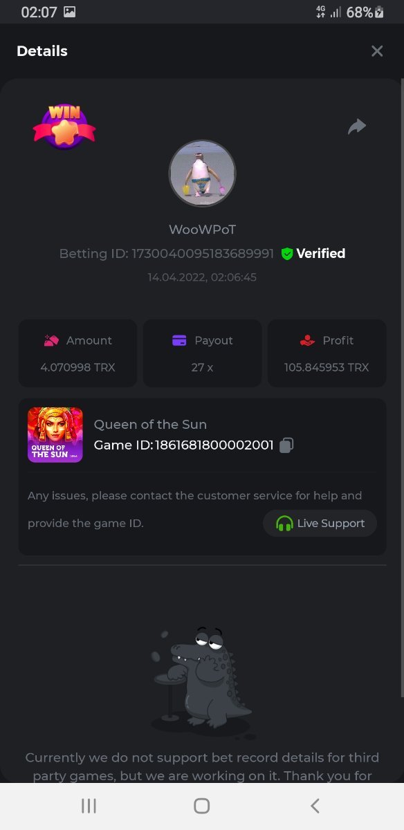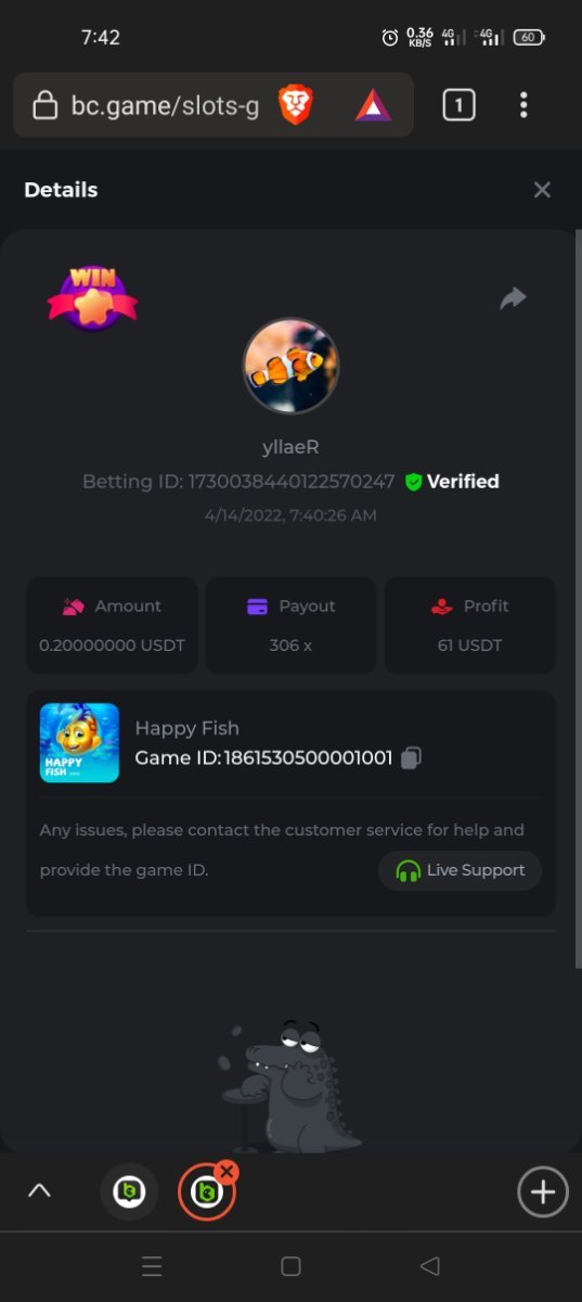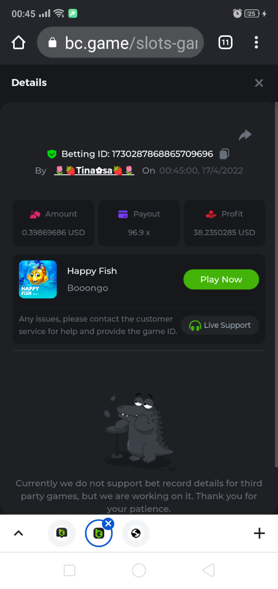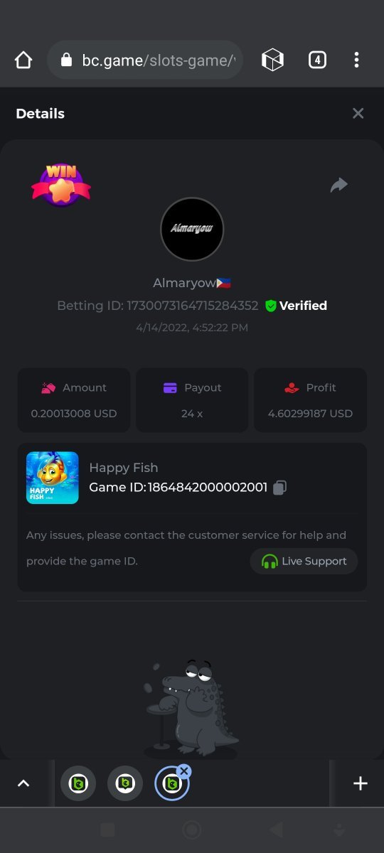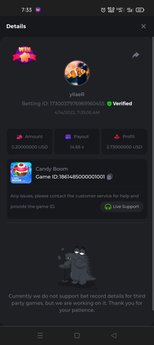 • In the same post, upload a screenshot of your win by clicking the game ID WITH VIEW IN USD mode ENABLED (accessible at the bottom of dropdown menu for your wallet up top, and Submit Reply. Done! This way, we can ensure that your bet indeed met the minimum requirement at the time of placing it: