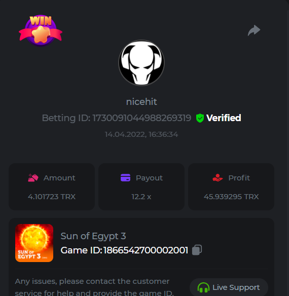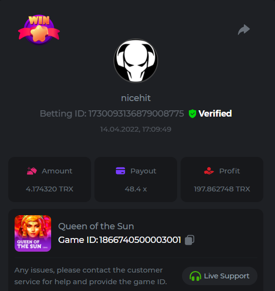 • If the player submits multiple winning entries for the same game, the entry with the highest multiplier will be valid.