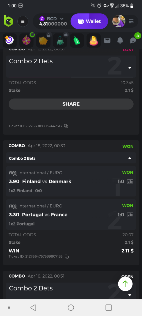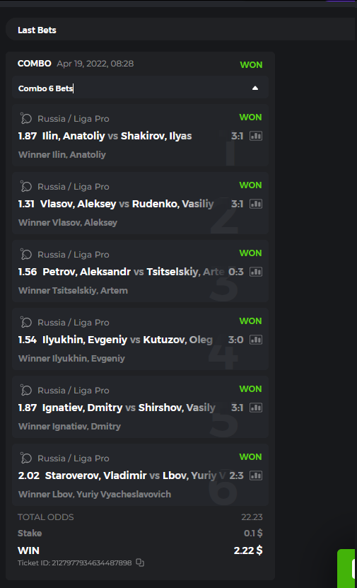 I posted the bets placed but open, not won, so I deleted them