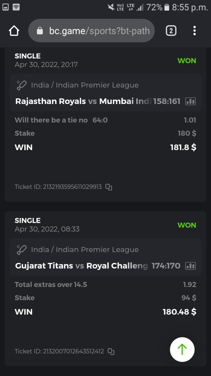 It will be almost 3 years since joining bc platfrom this july month, in these 3 years there have been many ups and downs, also got some good friends, when it was difficult, the mod also helped a lot in the chat room, I don't have all the screen shots But would like to share some minor win here. I would like to thank bc game.