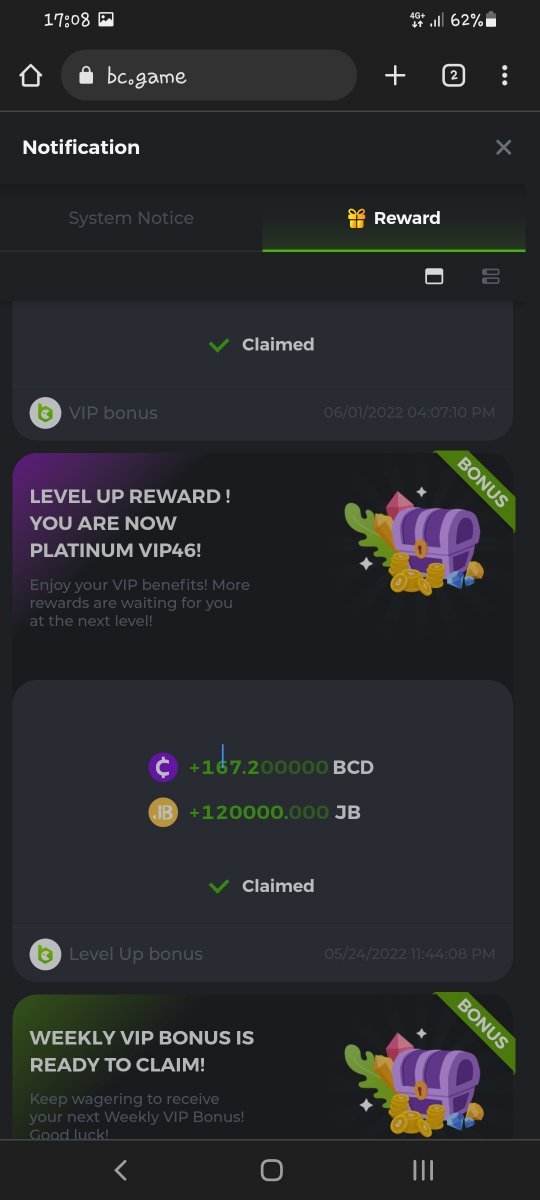 Lvl up. Started at 2019 , one of old veterans, also im done 10 medals https://bc.game/user/profile/676718