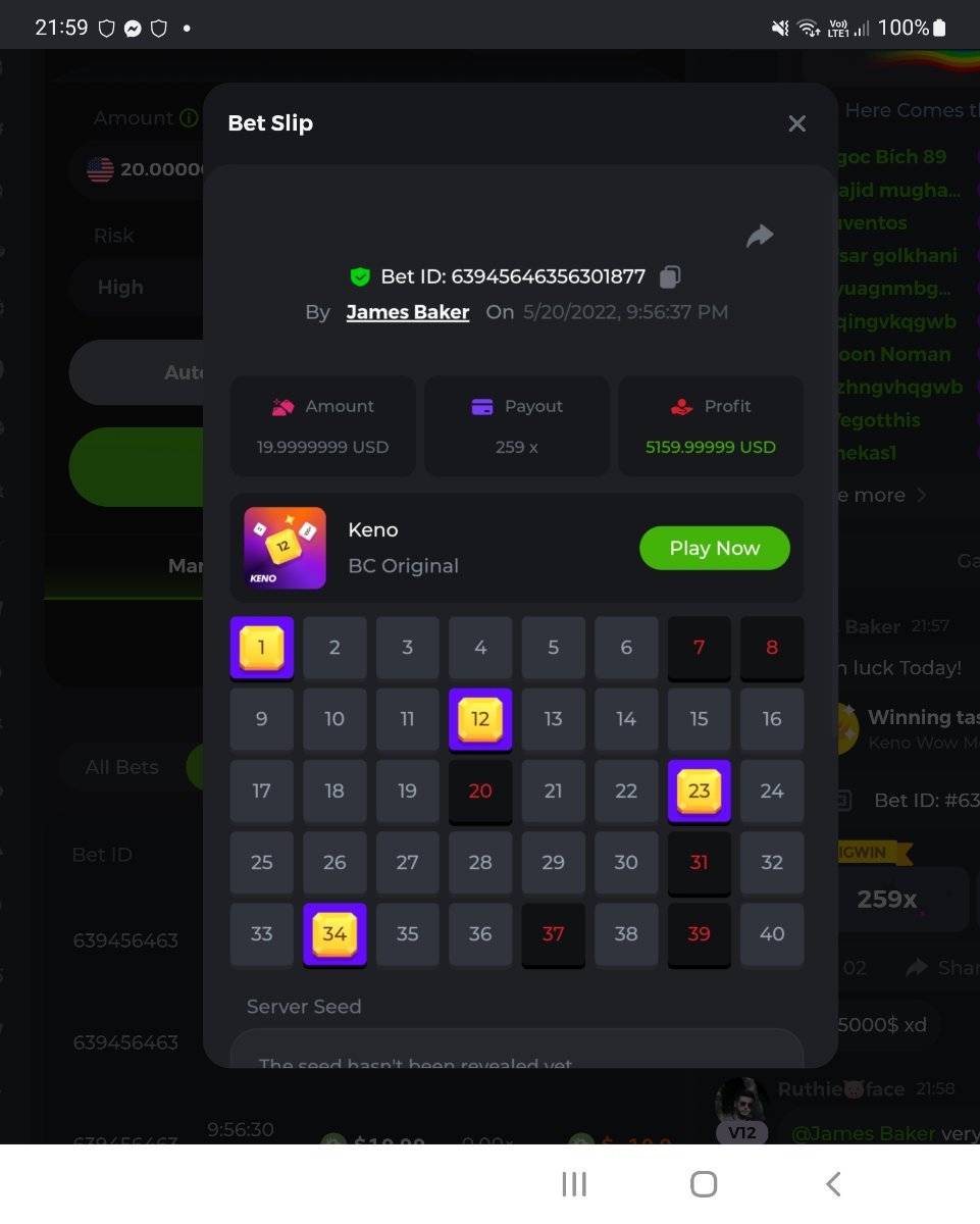so this was about 2 weeks ago, i did a 80$ deposit and went down to 17$ then managed to get huge wins from slots and went to dice and keno aswell and ended up with 20k$ at the top, definetly my favorite moment on BC, ended up wagering 235k $ from these 17$, hope i get a lucky run like that sometime in the future ❤