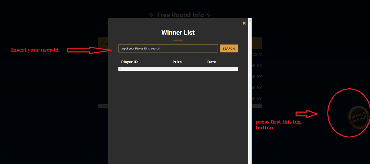 if you are on the winner list, once you open any selected games below. will be able to see the free round